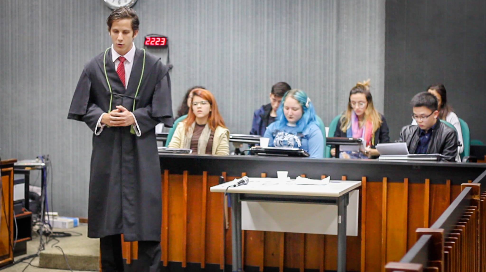 Através de representação cênica, os veteranos vivenciaram a experiência de trabalhar em um caso, mostrando como funciona uma sessão de Júri. Juiz, juíza substituta, oficiais de justiça, promotores, defensores públicos, réu e júri, todos estavam presentes para que os novos estudantes pudessem conhecer um pouco da prática jurídica.