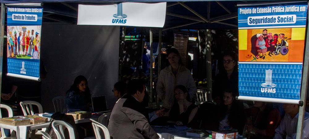 A UFMS participa da feira por meio dos projetos de extensão: “Práticas Jurídicas em Direito do Trabalho” e “Práticas Jurídicas em Seguridade Social”, desenvolvidos com alunos do curso de Direito da Instituição.