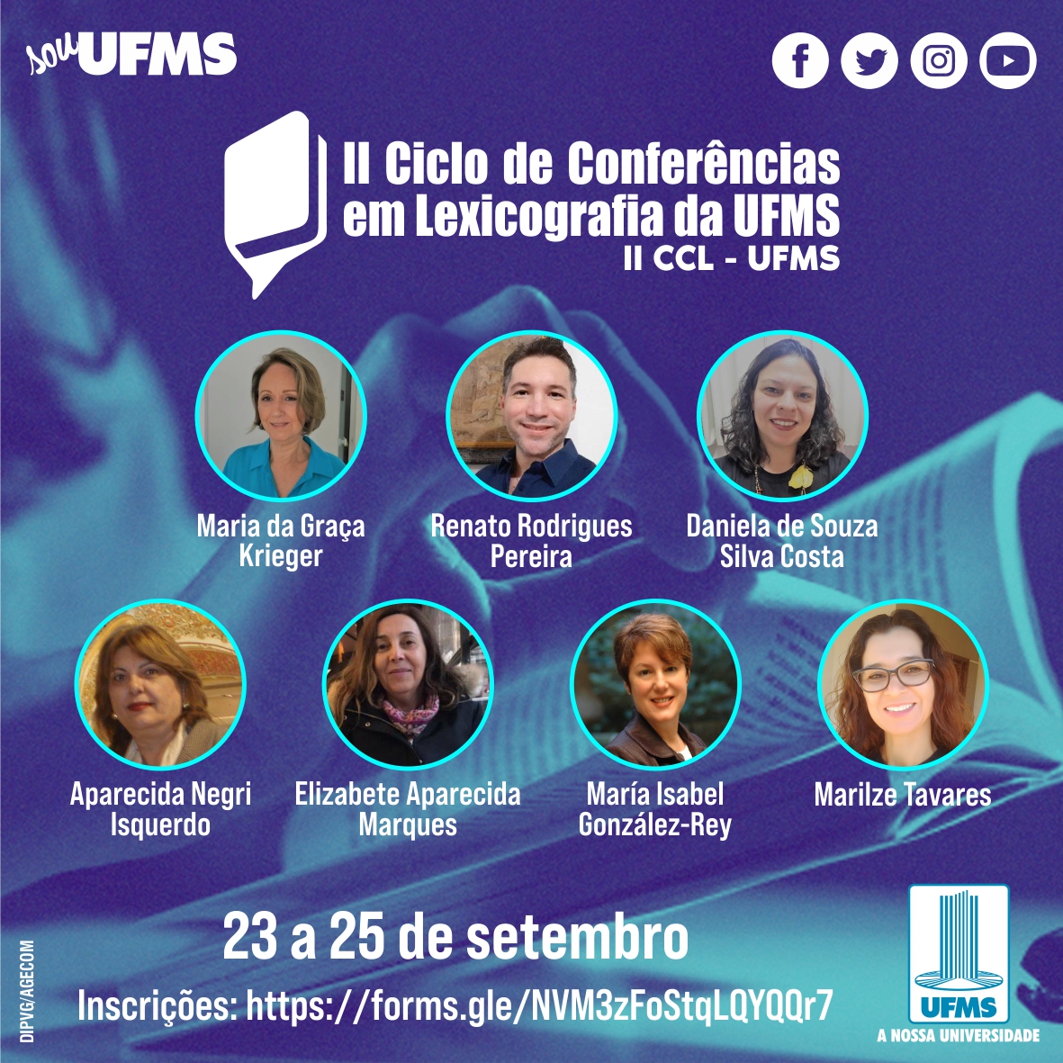 De 23 a 25 de setembro, será realizada o 2º Ciclo de Conferências em Lexicografia da UFMS. O evento, que está sendo organizado por professores do Campus de Três Lagoas (CPTL), Campus de Aquidauana (CPAQ) e da Cidade Universitária, terá palestras, mesas-redondas e apresentações de trabalhos que serão transmitidas pelo Google Meet e pelo YouTube.