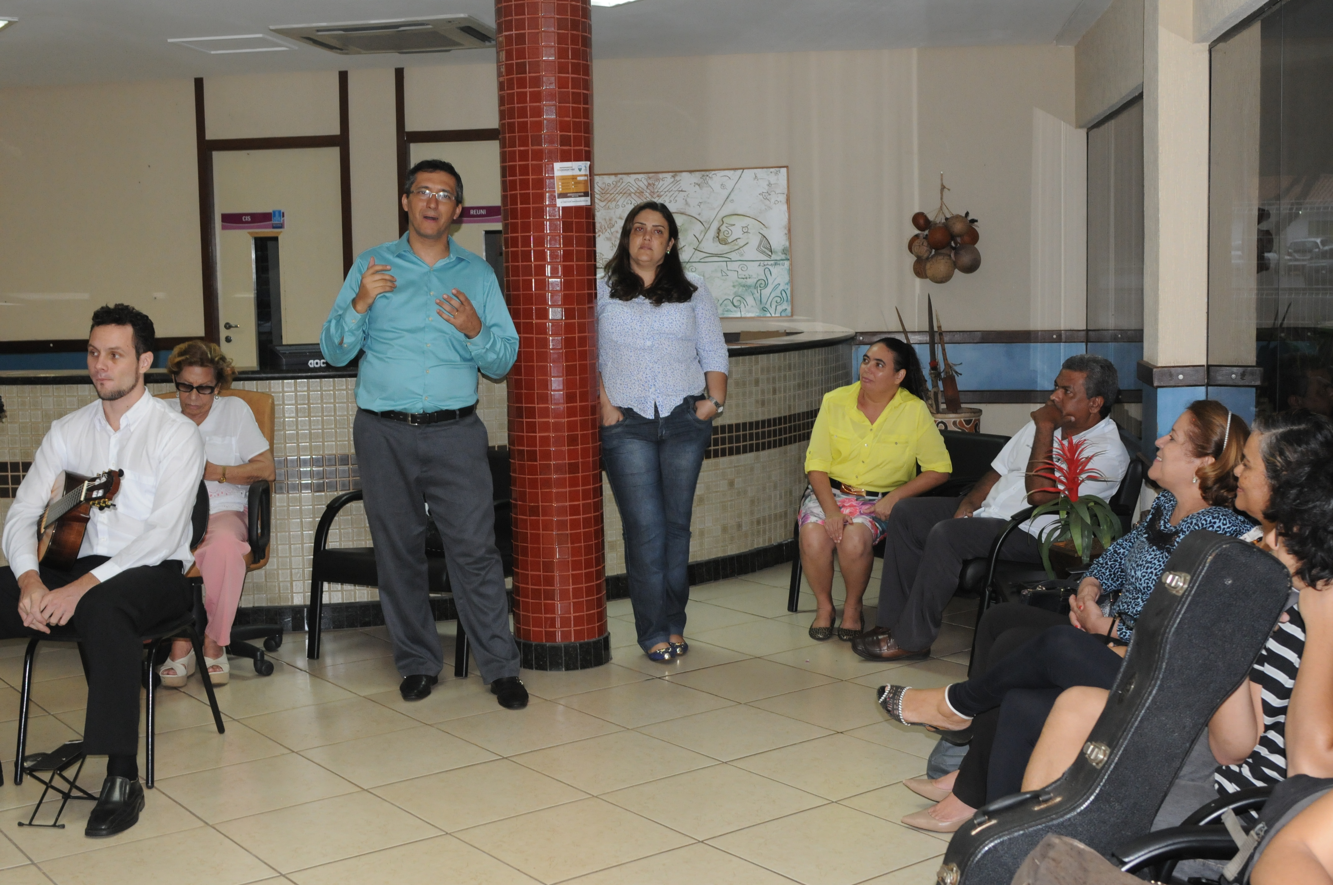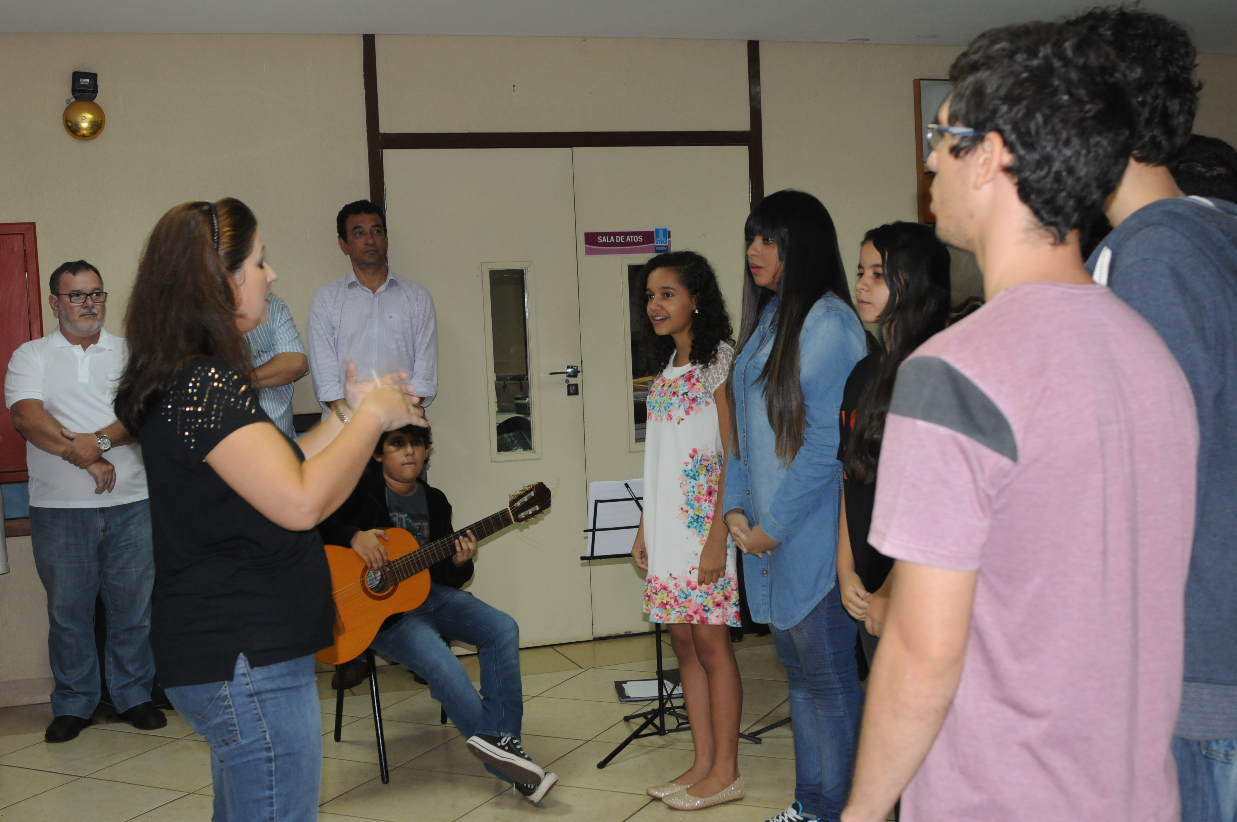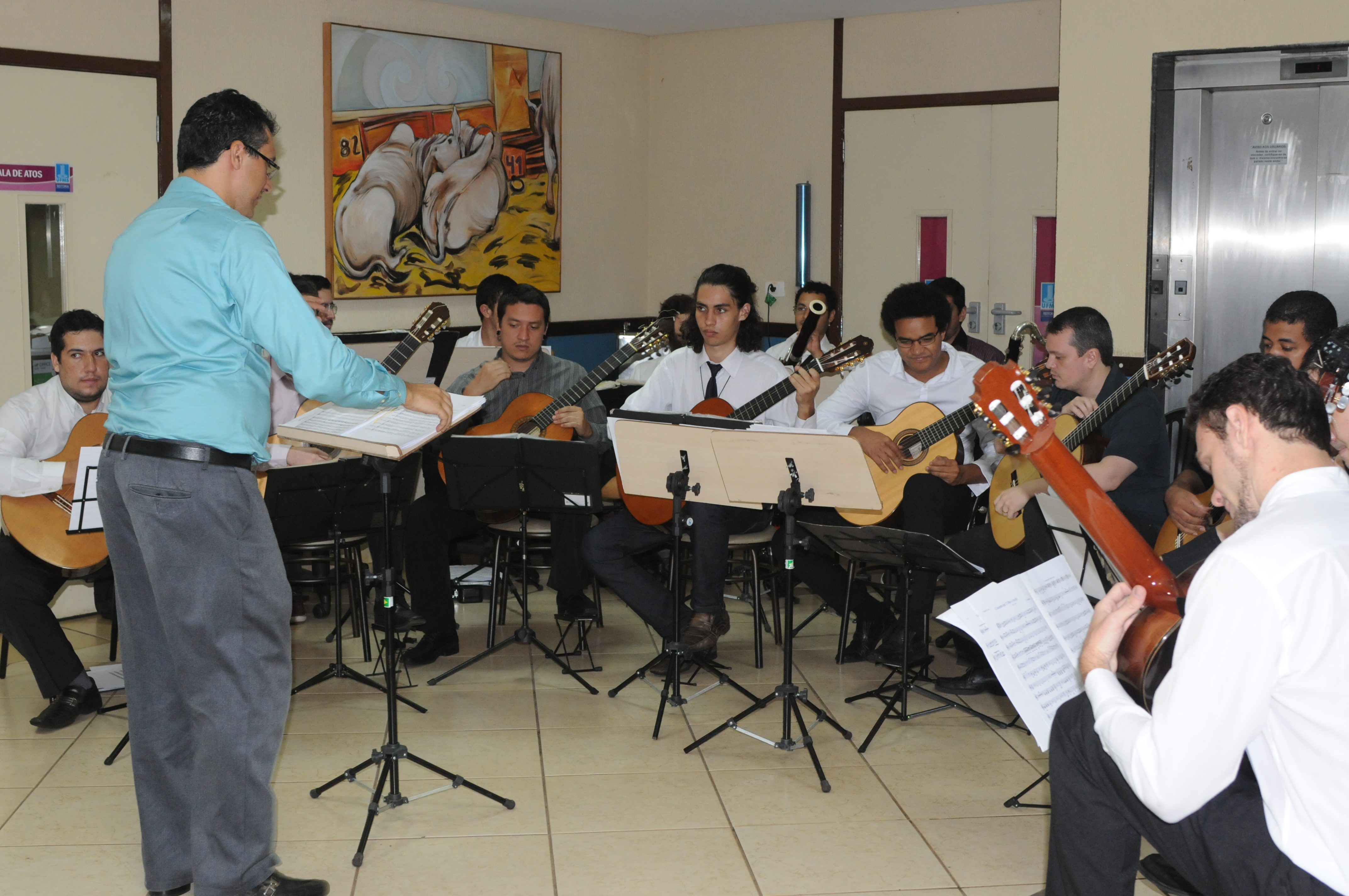 Para abrir o ano cultural na UFMS, foi realizado ontem no saguão da Reitoria momento musicial com apresentações da Camerata Madeira Dedilhadas, formada por egressos do curso de Música e alguns formandos, com regência de Marcelo Fernandes, coordenador de Cultura da Pró-Reitoria de Extensão, Cultura e As