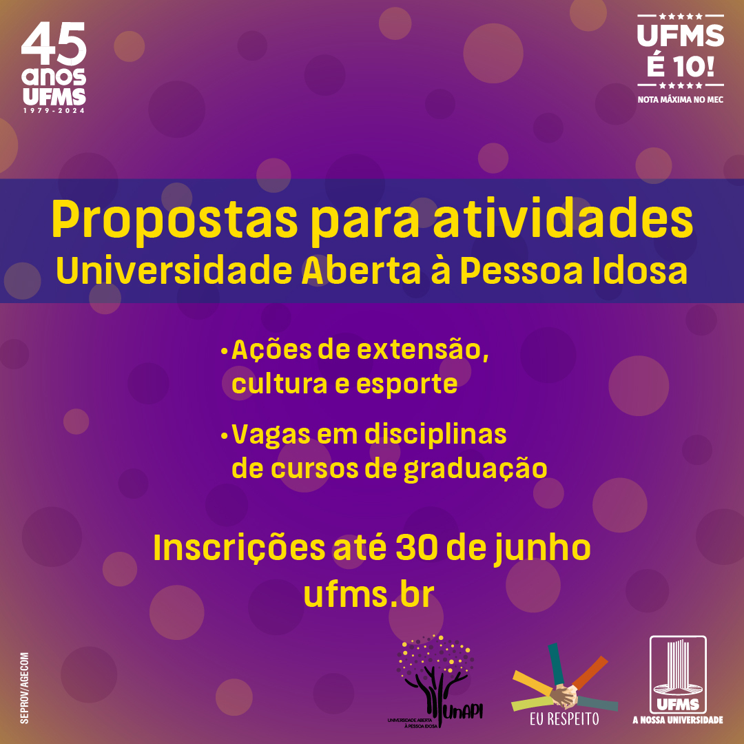 A diretora da Escola de Extensão, Liana Dessandre Duenha Garanhani, reforça que semestralmente são disponibilizadas vagas em diversas atividades e disciplinas isoladas em cursos de graduação presenciais para pessoas com 60 anos ou mais. “O Programa tem grande impacto na comunidade, pois atende mais de 1,1 mil pessoas idosas por semestre. Atualmente, a Unapi atende comunidades em cinco cidades de Mato Grosso do Sul, sendo elas Campo Grande, Coxim, Corumbá, Aquidauana e Três Lagoas. O objetivo da nossa Administração é ampliar o Programa para todas as cidades com câmpus da UFMS”, comenta.