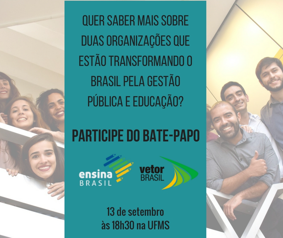 Amanhã (13/09), às 18h30, na sala 15 do Complexo Multiuso da UFMS: bate papo com a Vetor Brasil e a Ensina Brasil sobre processo seletivo de Trainee .