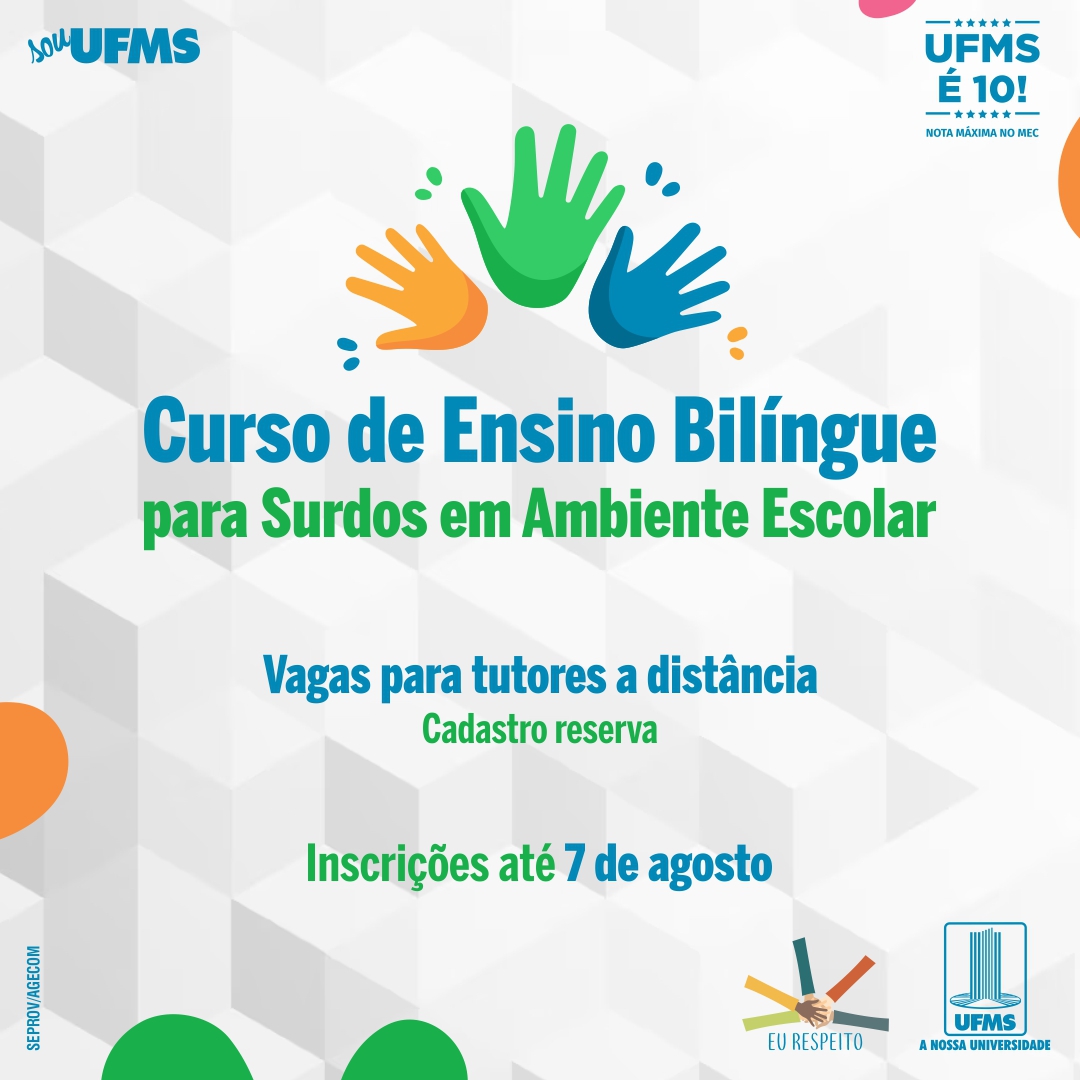 Estão abertas as inscrições para cadastro reserva de tutores a distância, interessados em atuar na ação de extensão Ensino Bilíngue para Surdos em Espaço Escolar. O curso tem o objetivo de contribuir para a formação continuada de profissionais que atuam nos Sistemas de Ensino da Educação Básica, e é uma iniciativa da Faculdade de Educação (Faed), em parceria com a Diretoria de Política de Educação Bilíngue de Surdos, do Ministério da Educação.