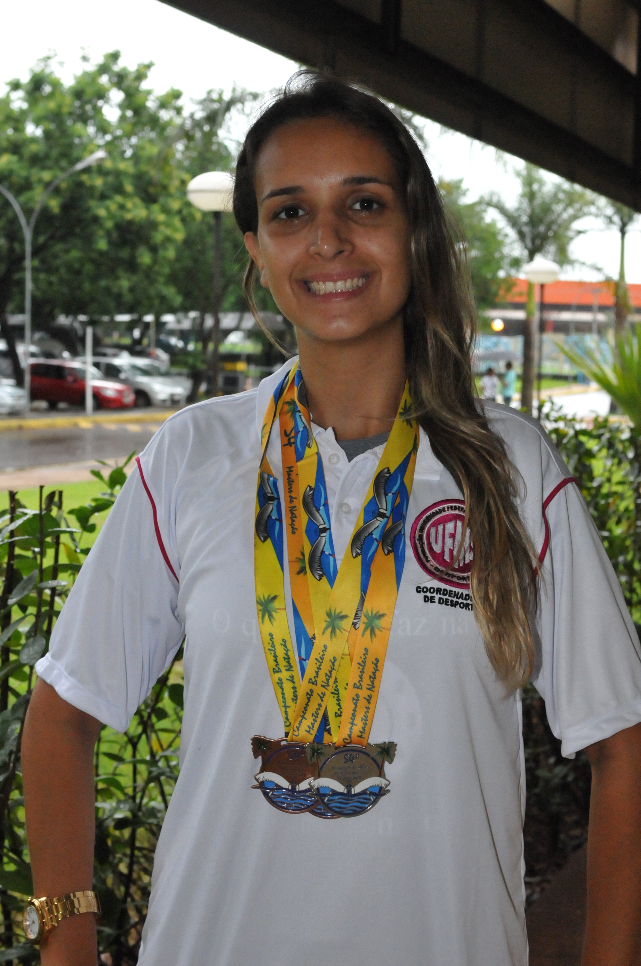 A formanda de Educação Física Carolyne Padilha Coqueiro, 24 anos, conquistou na semana passada três medalhas durante o 54º Campeonato Brasileiro Master de Natação realizado em Campo Grande.