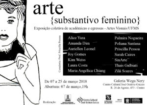 Com abertura marcada para as 19h do dia 7 de março, no Centro Cultural José Octávio Guizzo em Campo Grande, artistas que são ou foram acadêmicas dos cursos de Artes Visuais da UFMS expõem obras que tratam de questões femininas e contemporâneas. A mostra intitulada “Arte {substantivo feminino}” tem curadoria da professora Priscilla Pessoa, conta com 14 artistas, e estará aberta ao público de 7 a 25 de março de 2018, na Galeria Wega Nery.
