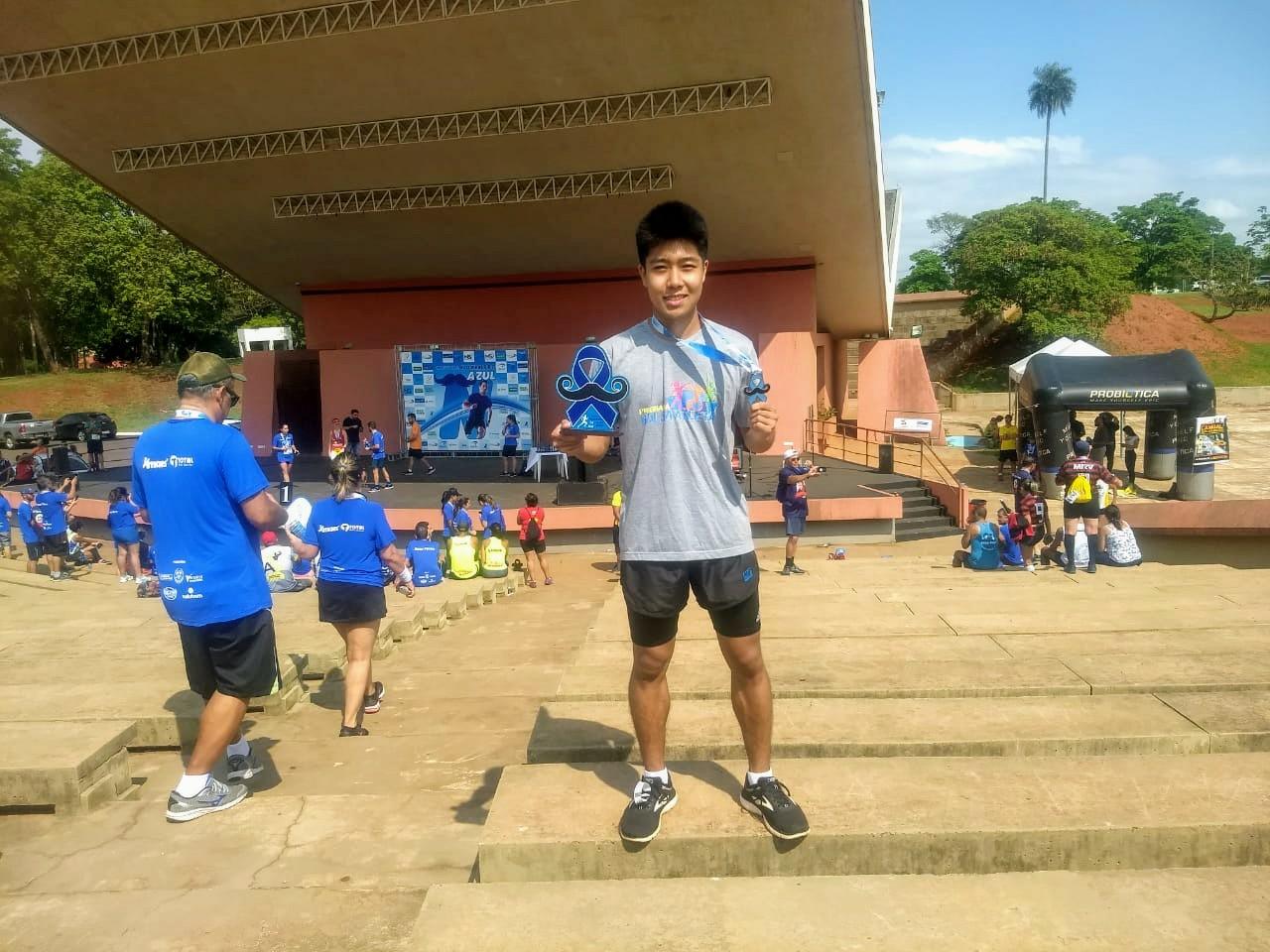 O acadêmico de Odontologia e integrante do Programa Bolsa Atleta UFMS, Bruno Shimada, garantiu mais um pódio este ano. Desta vez foi na 2º Corrida Novembro Azul, realizada domingo (24), em Campo Grande. Bruno conquistou o 2º lugar na categoria 20-29 anos na corrida, que foi organizada pela Sociedade Brasileira de Urologia (SBU), e teve a participação de 350 corredores. “O evento foi muito bom, reuniu atletas da nossa região e outros de alto nível. O percurso foi bem sinalizado e a corrida foi bem organizada”, declarou o estudante.