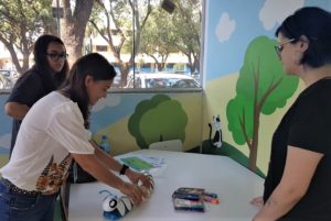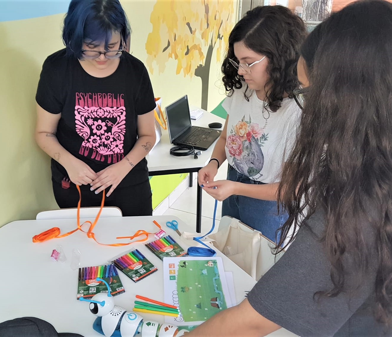 Ela destaca que a decisão em iniciar o projeto na Brinquedoteca veio de uma demanda interna. “Vamos executar essa ação como piloto para, posteriormente, levar a outras crianças. Nos encontros vamos realizar atividades lúdicas envolvendo lógica e programação, com robôs e outros materiais apropriados para a idade das crianças. Nas oficinas estão envolvidas três acadêmicas: Emily Tomas Vialogo, do curso de Engenharia de Software, Jhullya Eduarda Soares Martins, do curso de Engenharia da Computação e Izabella Coelho da Silva, do curso de Tecnologia em Análise e Desenvolvimento de Sistemas“. Todas estudaram, planejaram, trabalharam e pensaram nas atividades juntas”, conta Luciana. “Nesta primeira oficina utilizamos um robô próprio para a atividade – Codpeia, que envolve programação física, ou seja, as crianças vão utilizar as mãos para montar a Codpeia e programar o percurso que a mesma deve percurrer, não utilizarão computador. Realizamos nesta segunda-feira, 8, a primeira de quatro oficinas, que acontecem sempre das 9h às 11h, abordando conteúdos diversificados sobre o tema”, complementa.