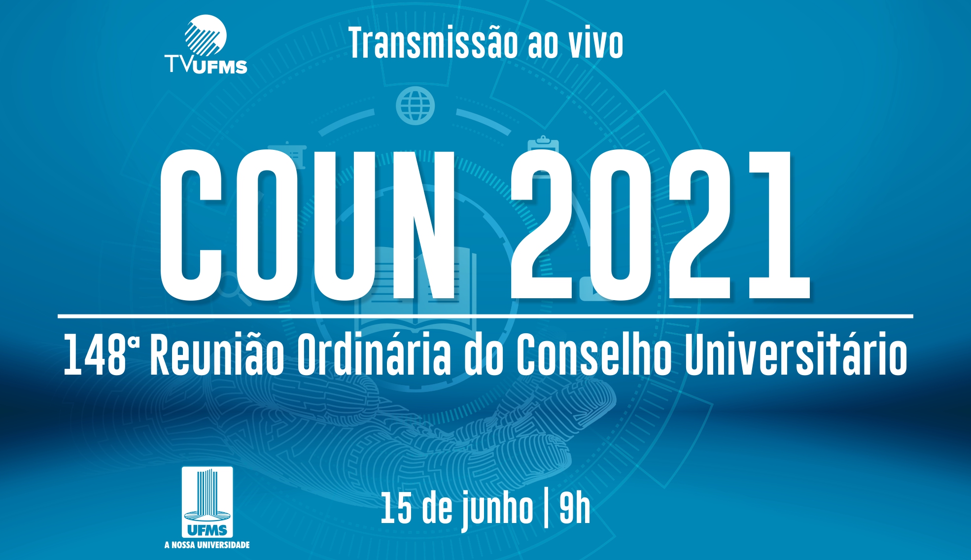 Acompanhe a 148ª Reunião do Conselho Universitário 4 anos atrás - 15/06/202115/06/2021 Notícias Nesta terça-feira, 15, será realizada por videoconferência a 148ª Reunião Ordinária do Conselho Universitário da UFMS. A reunião será transmitida no canal da TV UFMS, a partir das 9 horas. Acompanhe: