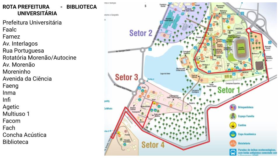 Trajeto sentido Terminal Morenão → Biblioteca Central