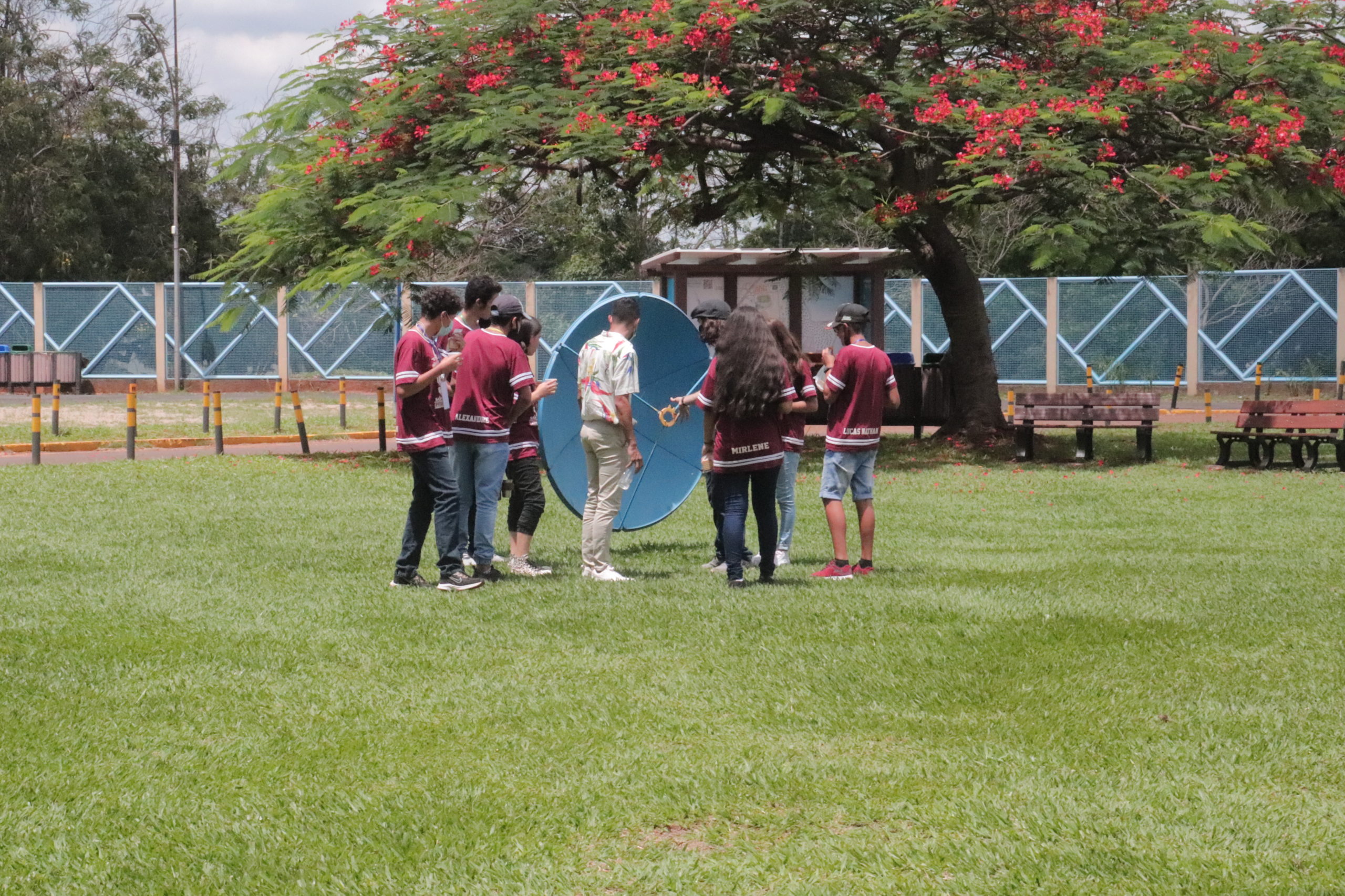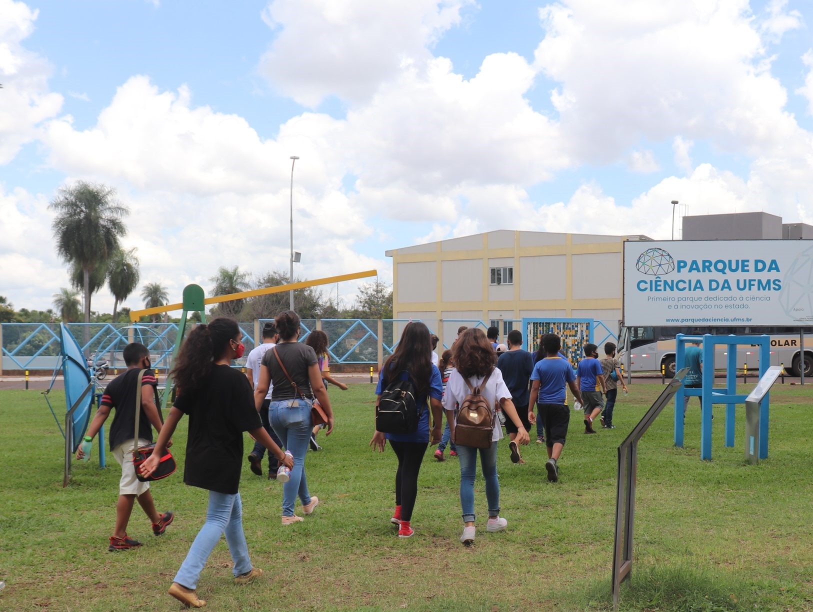 Na manhã desta sexta-feira, 3, a Cidade Universitária em Campo Grande recebeu a visita de alunos de seis escolas municipais de Terenos. As 110 crianças e adolescentes, entre 9 e 14 anos de idade, conheceram laboratórios, caminharam pela Universidade e realizaram atividades no Parque da Ciência da UFMS.