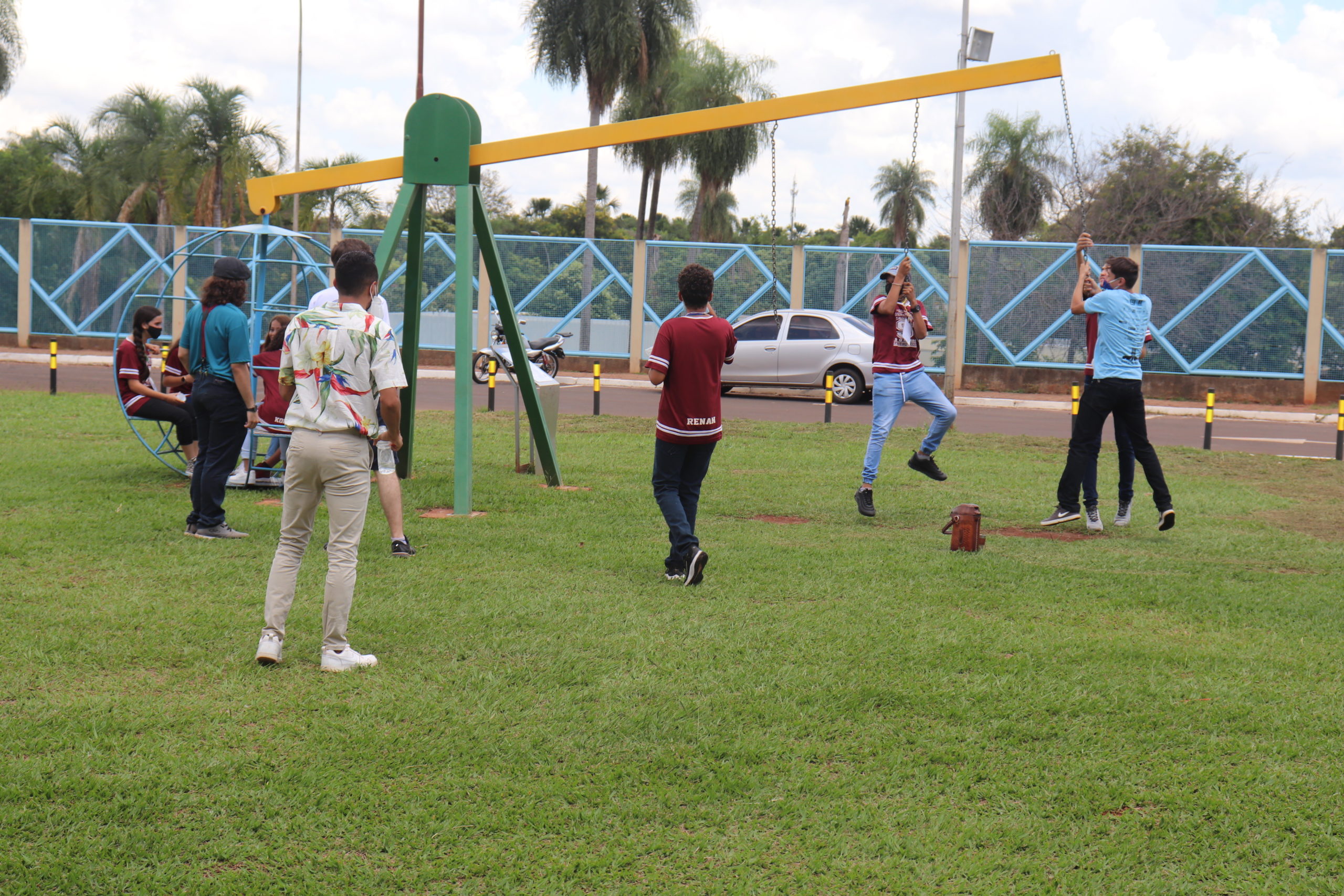 A diretora de Popularização da Ciência em exercício, Naiade Valenzuela de Alcântara, explicou que são vários projetos realizados pela UFMS para promover a aproximação entre sociedade e Ciência. “Nós fazemos essa articulação entre a comunidade e os projetos da Universidade. A visitação ao Parque da Ciência é uma ação do Vem pra UFMS que é realizada todos os sábados, das 7h às 11h, desde 13 de outubro até 11 de dezembro. Todas as escolas e grupos interessados podem vir conhecer os equipamentos e realizar atividades. Temos bolsistas dos cursos de Artes Visuais, Audiovisual, Jornalismo e Educação Física que explicam cada monumento e também realizam oficinas de pintura, de educação física, entre outras. O projeto é aberto a toda a comunidade, então os pais das crianças e adolescentes também podem vir participar”, informou.