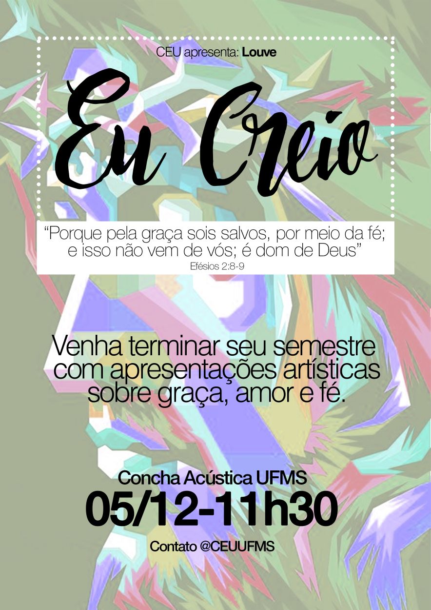 A Companhia de Estudantes Universitários (CEU/UFMS) realiza, no dia 5 de dezembro, às 11h30, a 2ª edição do evento “Louve”, na Concha Acústica da UFMS.