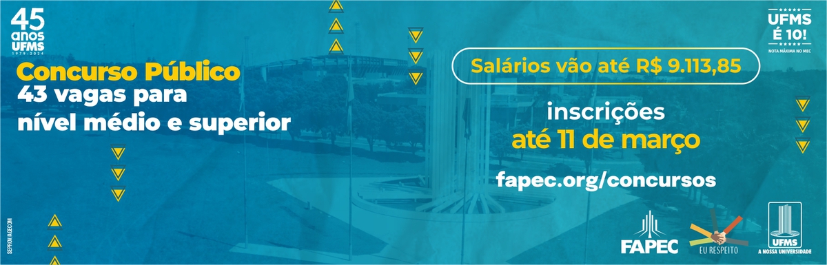 Os interessados em participar do concurso público de técnico-administrativo da UFMS terão novas chances para inscrição. As vagas foram ampliadas de 35 para 43 e o prazo estendido até 11 de março. As inscrições devem ser feitas aqui.