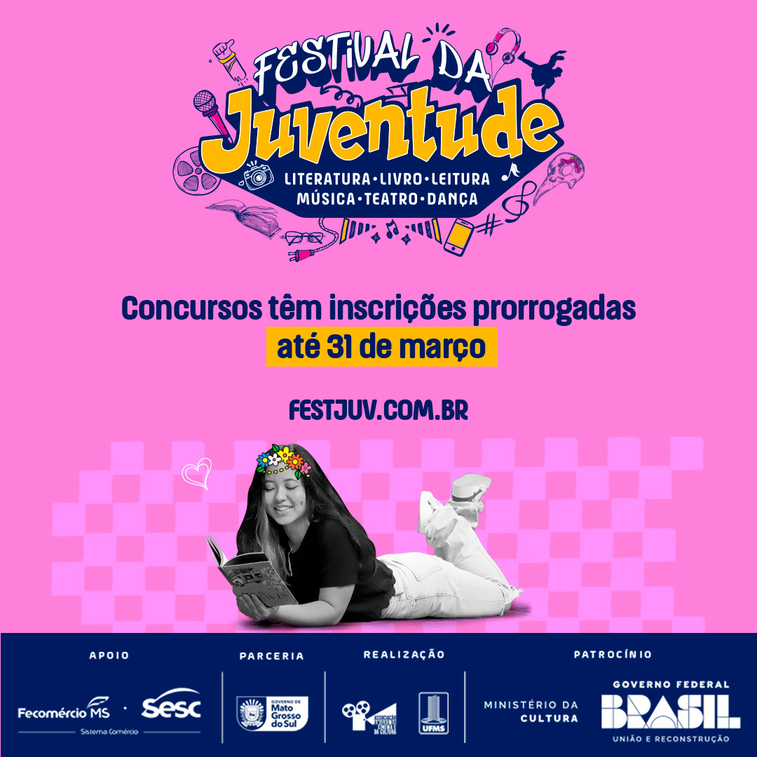 As inscrições para os concursos realizados durante a primeira edição do Festival da Juventude (FestJuv) foram prorrogadas até 31 de março. Jovens de 15 a 24 anos podem participar. São três concursos: : Batalha de Rima; Contos, crônicas e poesia; e Reportagem escrita e audiovisual.