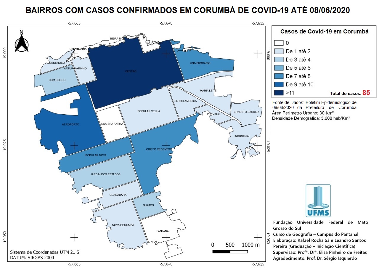 Ofertar às  autoridades  públicas  municipais de Corumbá e Ladário produtos cartográficos que mostrem, espacialmente, a concentração dos casos de Covid-19 na região, bem como a dispersão da doença no sítio urbano, é uma das principais diretrizes de projeto desenvolvido no Campus do Pantanal (Cpan).