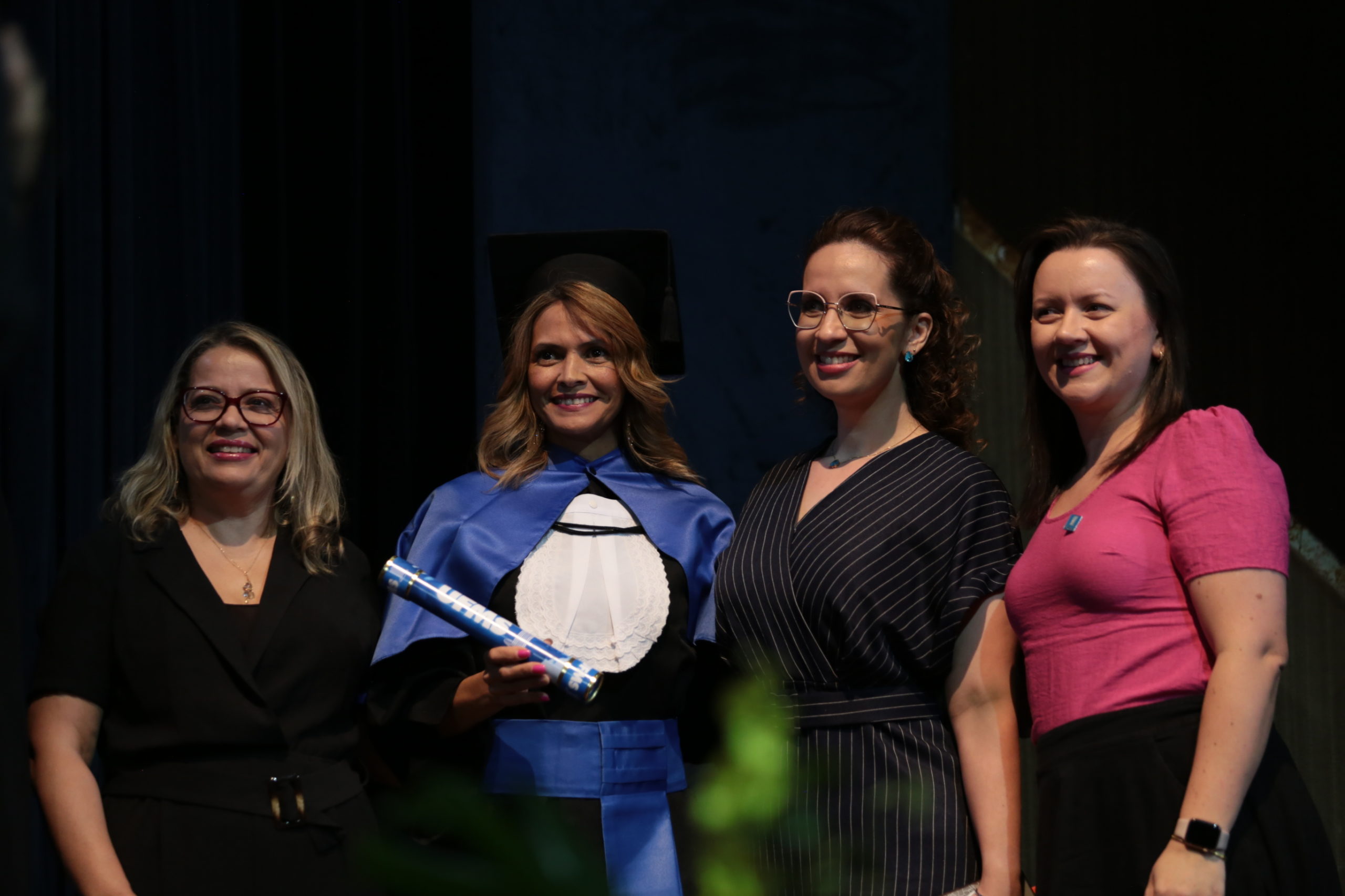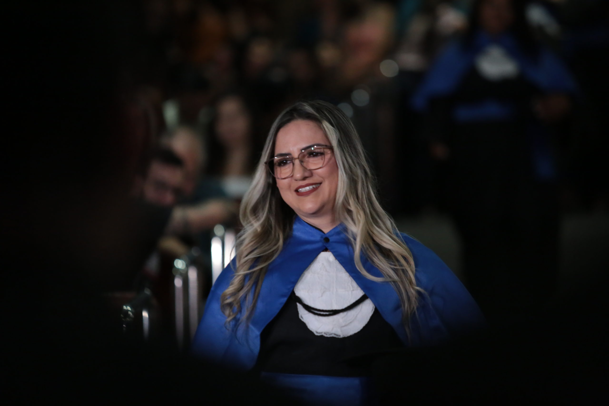 A tecnóloga em Processos Gerenciais Kamila Vieira da Silva discursou em nome dos formandos da noite. “Ao longo desses anos, enfrentamos muitos desafios. Cada aula, cada prova, cada projeto foi uma peça essencial na construção do que somos hoje. Alguns de nós trabalharam duro para equilibrar emprego e estudos, enquanto outros tiveram que se mudar de suas cidades natais, deixando suas famílias e amigos para trás. Mas, independente das circunstâncias, todos nós fomos persistentes e determinados ao alcançar nossos objetivos. Hoje, saímos daqui não apenas como formandos, mas como pessoas transformadas, preparadas para enfrentar o mercado de trabalho e os desafios que ele nos reserva”.