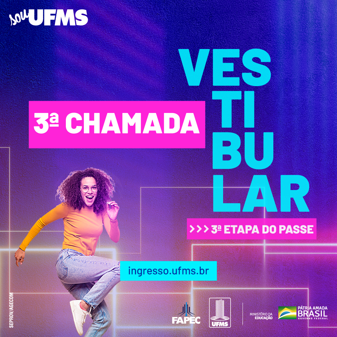 Foram publicados, no site ingresso.ufms.br, os editais com os aprovados na 3ª chamada do Vestibular UFMS e na 3ª etapa do PASSE. Os convocados terão de hoje, 18, até segunda-feira, 21, para realizarem a matrícula na Central de Matrículas.