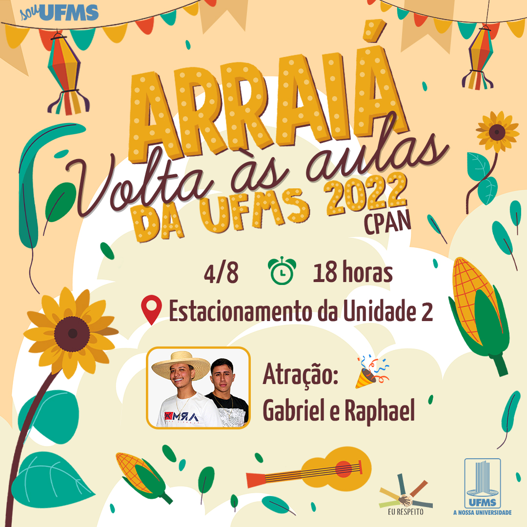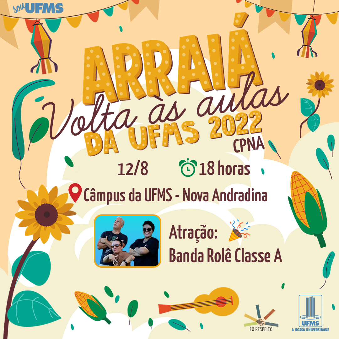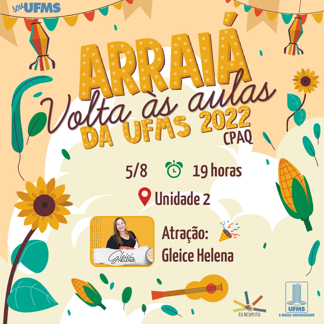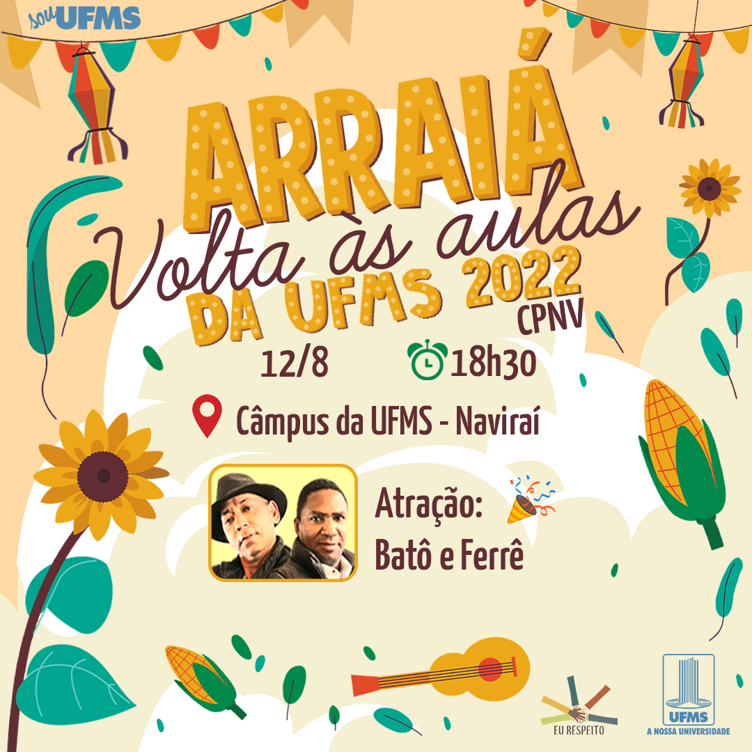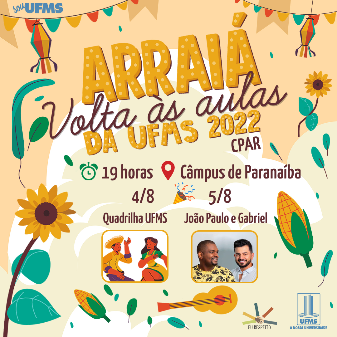 O Arraiá da UFMS 2022 Volta às Aulas faz parte da campanha Eu Respeito e será aberto à toda a comunidade. As celebrações terão atrações musicais, danças e barracas com comidas típicas juninas.