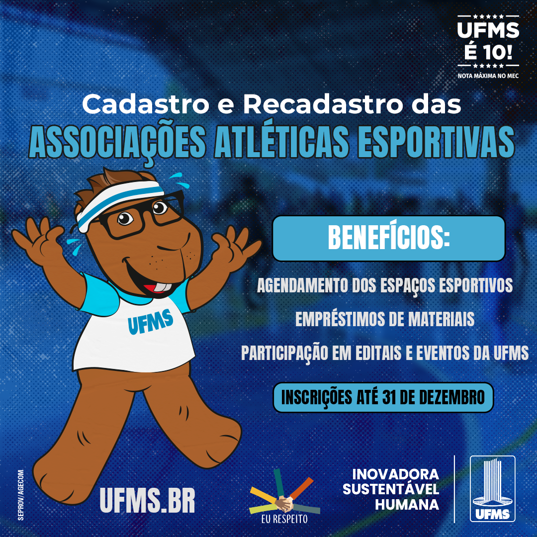 As associações cadastradas em 2025 poderão usufruir de alguns benefícios, como a prioridade para o agendamento de espaços esportivos para treinamento e competições esportivas; empréstimo de materiais esportivos; participação em editais de concessão de materiais e eventos propostos pela UFMS; e apoio nos eventos organizados pelas atléticas.