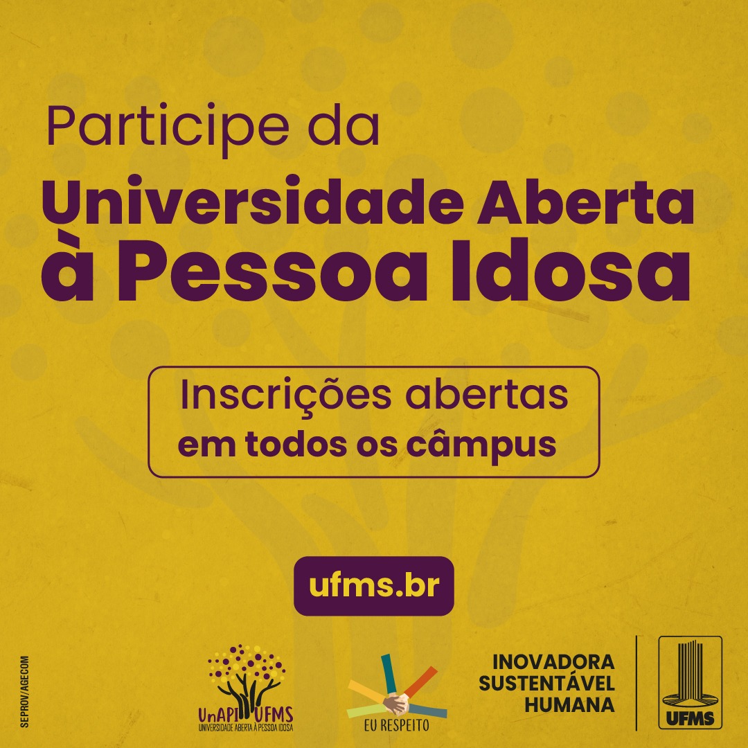 Neste mês de fevereiro, iniciam-se as inscrições para pessoas com 60 anos ou mais participarem das ações de ensino, extensão, cultura e esporte oferecidas pelo programa institucional de extensão Universidade Aberta à Pessoa Idosa (Unapi) da UFMS. São mais de cem atividades e, ainda, há a possibilidade de escolha entre 50 disciplinas presenciais em cursos de graduação, totalizando 3.235 vagas.