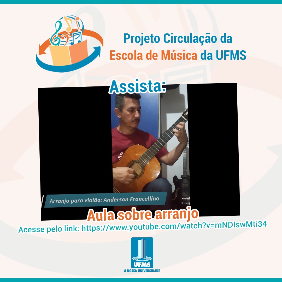 O Projeto Circulação da Escola de Música da UFMS disponibilizou uma aula de arranjo voltada para estudantes e professores de violão clássico.