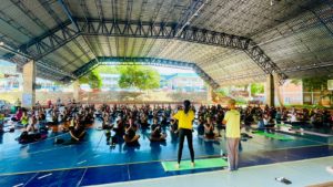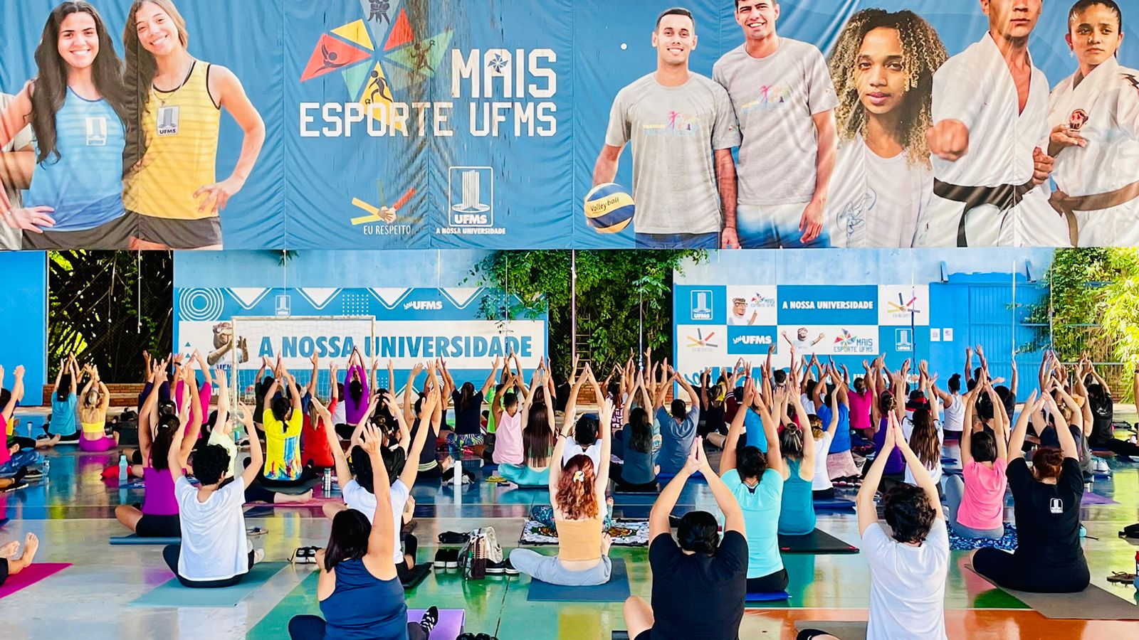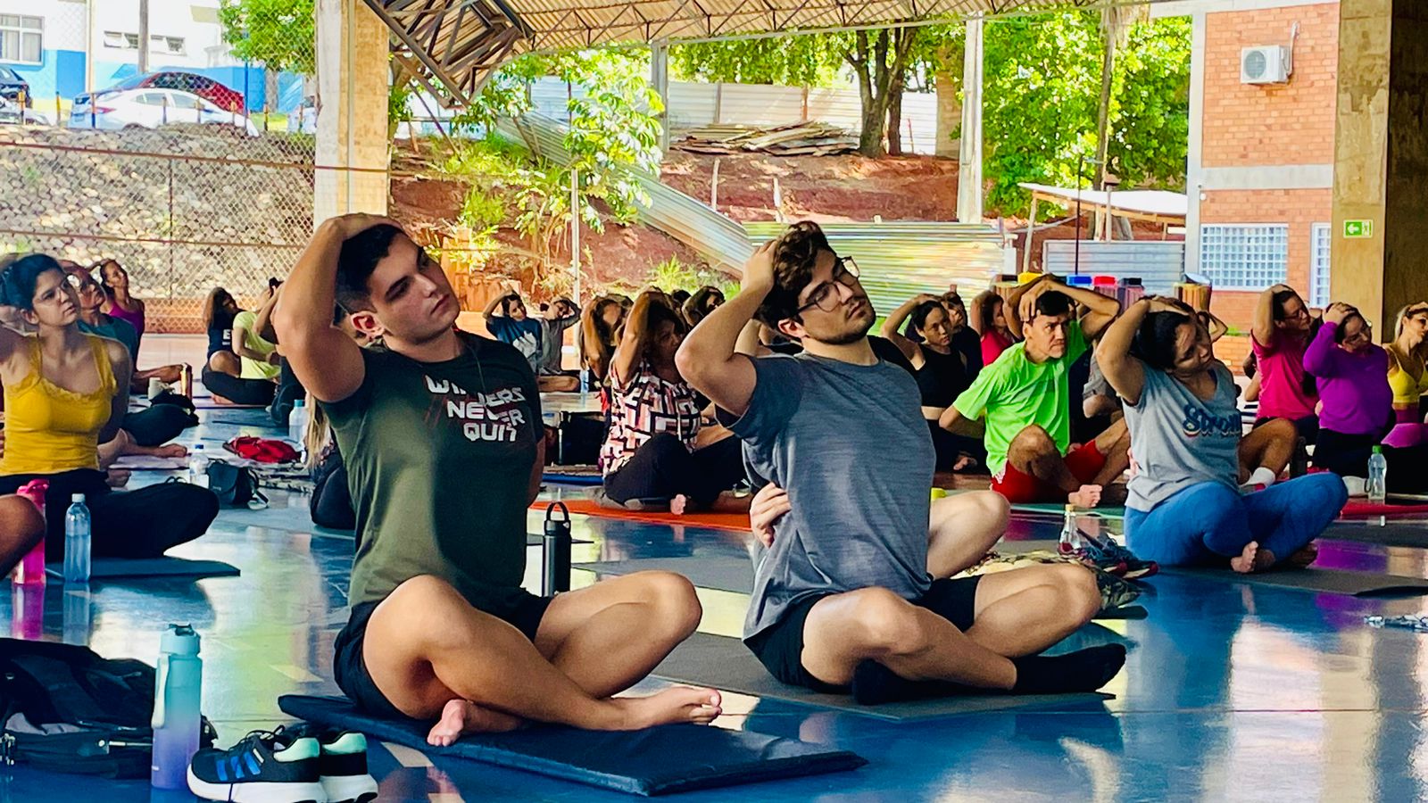 O projeto Conexão e Bem-Estar por meio do Yoga reuniu mais de 200 pessoas na manhã deste sábado, 10, na quadra esportiva da Cidade Universitária. Com público diversificado, a ideia da prática do Yoga na Universidade é prevenir doenças, além de amenizar sintomas de ansiedade e estresse.