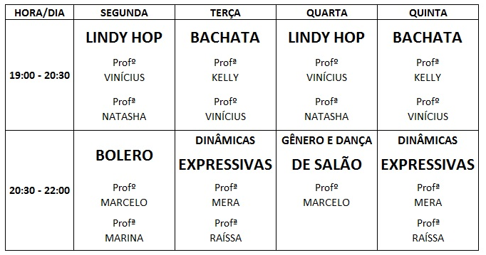 O pagamento vale para todas as modalidades e estilos de dança. Cada GRU solicita apenas um CPF, então o nome do parceiro(a) será anotado no primeiro dia de aula e não poderá ser alterado posteriormente.