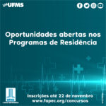 Estão abertas até 22 de novembro as inscrições para seis programas de Residência da UFMS. As oportunidades são para profissionais