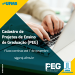 Está aberto o período para cadastro de Projetos de Ensino de Graduação (PEG), podendo ser feito até o dia 1º