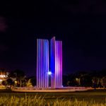O Monumento símbolo da Universidade Federal de Mato Grosso do Sul, o Paliteiro, ganhou uma iluminação diferente neste mês de