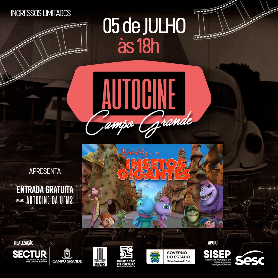 O Grilo Feliz e os Insetos Gigantes é um dos filmes do Cine Sesc. “Entendemos que o AutoCine democratiza o acesso à cultura por meio de conteúdos produzidos por grandes nomes da arte e o Sesc, enquanto instituição que vê o valor da cultura na formação do cidadão e de uma sociedade mais igualitária, não poderia ficar de fora”, explica a diretora regional do Sesc MS, Regina Ferro. “E é uma alegria contribuir com a volta das operações do AutoCine, um resgate para a cultura de Campo Grande”.