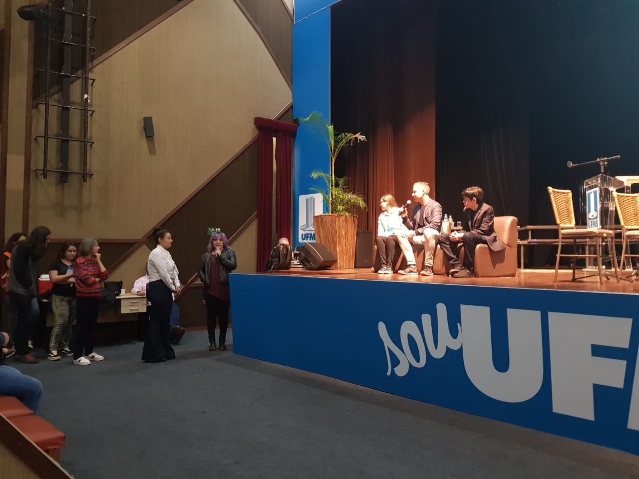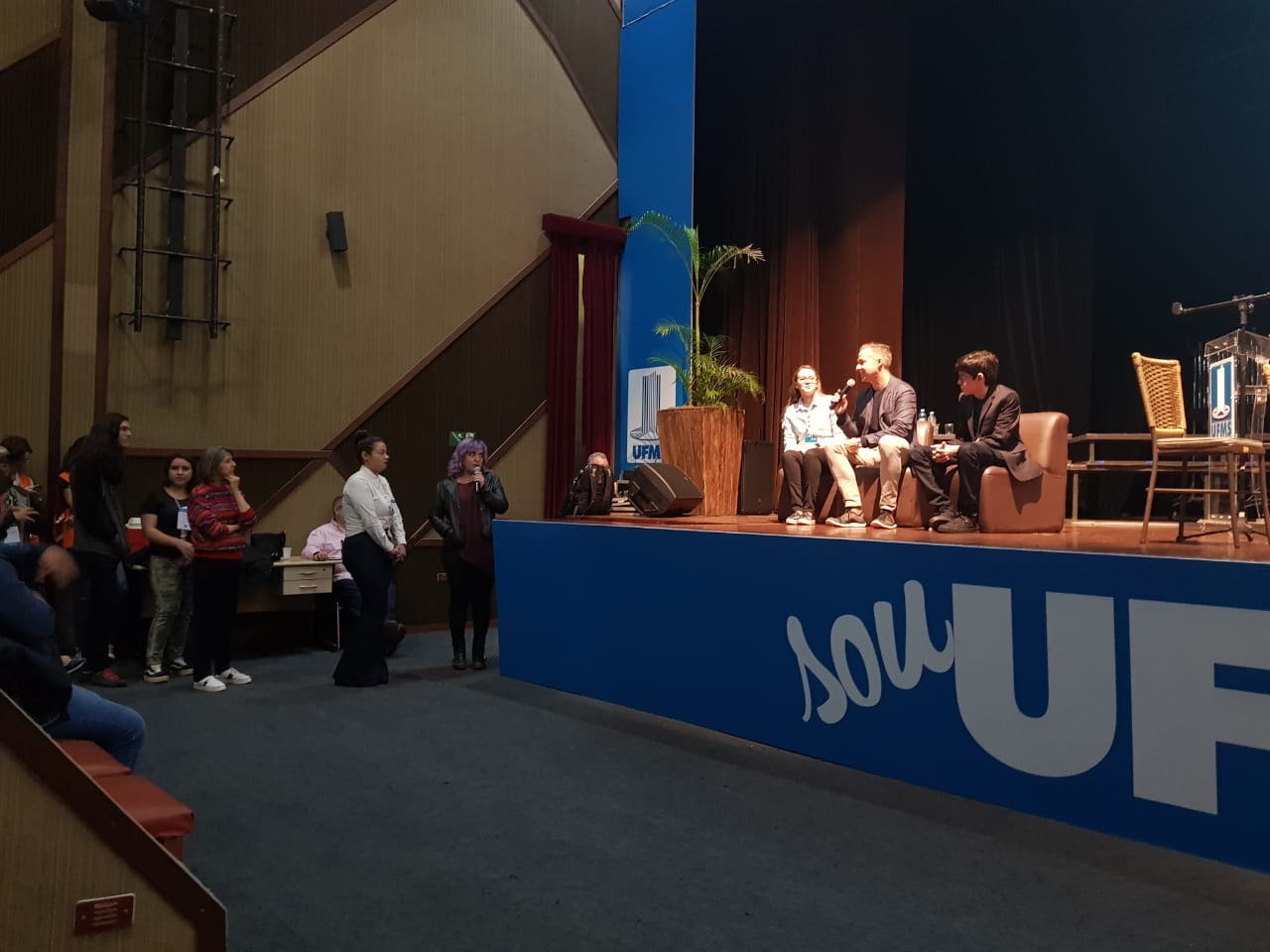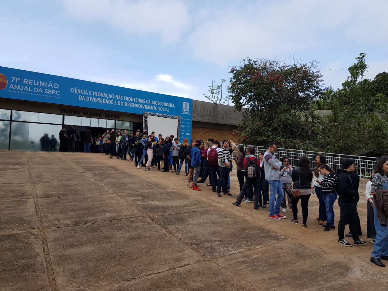 2 do Multiuso 1. A fila já era quilométrica 30 minutos antes do início da atividade, que estava marcada para as 10h30. O auditório, que tem grande capacidade, não se fez suficiente ao público e a conferência foi remanejada para o Teatro Glauce Rocha. O aviso gerou correria, e o público que estava para fora do auditório, saiu em disparo total rumo ao Teatro, que após, tomou sua capacidade máxima.