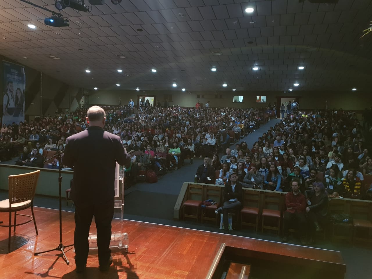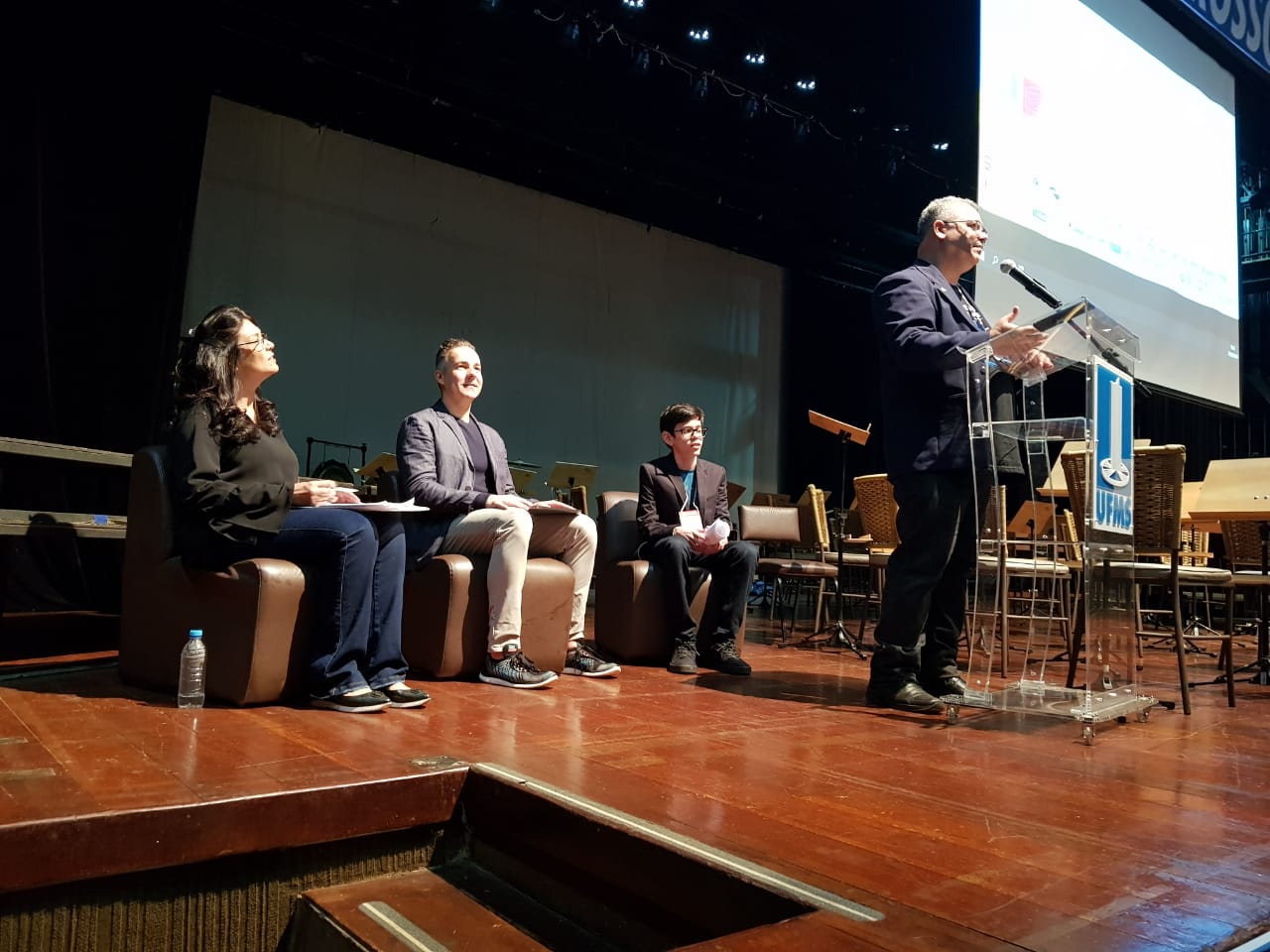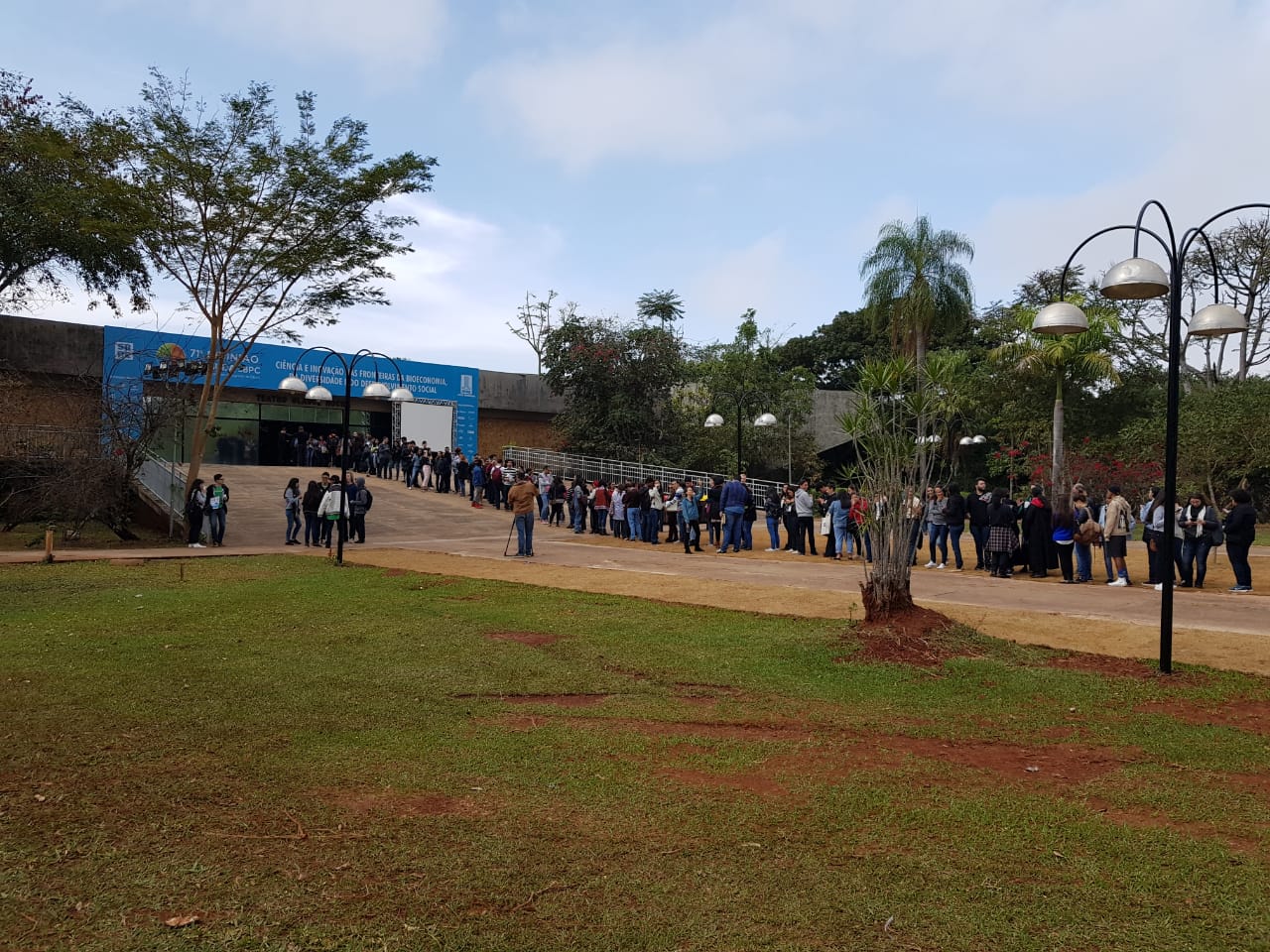 2 do Multiuso 1. A fila já era quilométrica 30 minutos antes do início da atividade, que estava marcada para as 10h30. O auditório, que tem grande capacidade, não se fez suficiente ao público e a conferência foi remanejada para o Teatro Glauce Rocha. O aviso gerou correria, e o público que estava para fora do auditório, saiu em disparo total rumo ao Teatro, que após, tomou sua capacidade máxima.