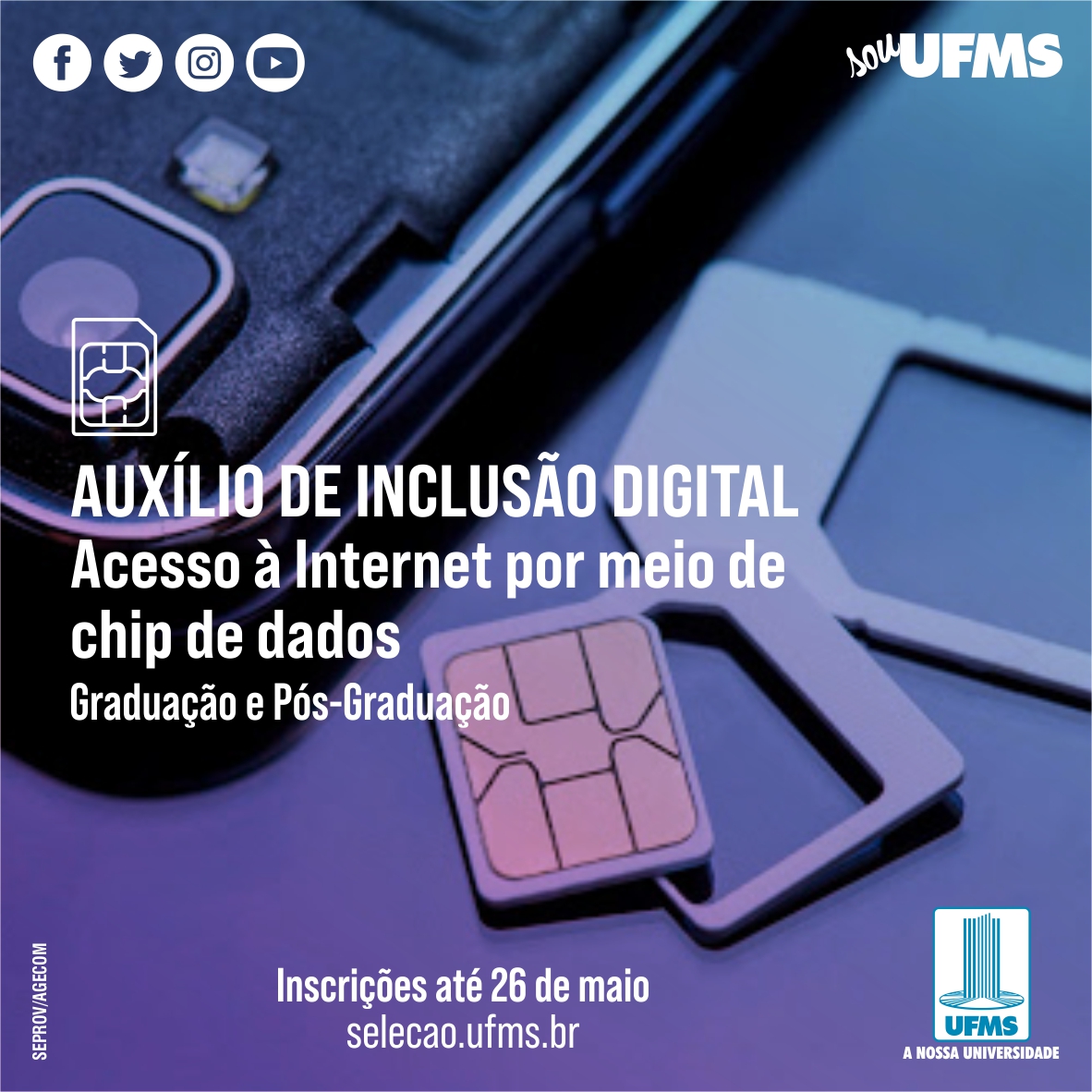 As inscrições vão até 26 de maio e devem ser feitas pelo site selecao.ufms.br. Para se candidatar, é necessário estar regularmente matriculado em pelo menos uma disciplina, possuir renda per capita de até um salário mínimo e meio, e possuir acesso à infraestrutura tecnológica – como celular, tablet, computador ou notebook – que possibilite o uso da Internet por meio de chip de dados.