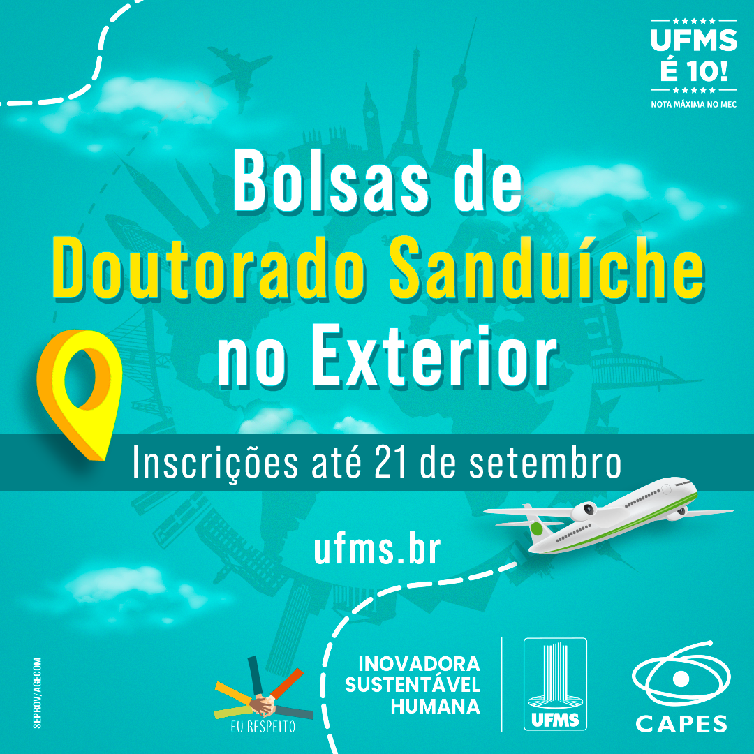 O incentivo à internacionalização é uma das metas dos programas de pós-graduação da UFMS. Uma das iniciativas com esse objetivo é o Programa Institucional de Doutorado Sanduíche no Exterior (PDSE), vinculado à Coordenação de Aperfeiçoamento de Pessoal de Nível Superior (Capes). Os estudantes dos cursos de doutorado interessados em concorrer a bolsas de estágio em pesquisa em outros países devem se inscrever até 21 de setembro no Sistema de Informação e Gestão de Projetos.