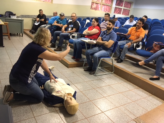 No primeiro dia do curso, os brigadistas reviram sobre o combate a incêndio, com aula teórica e prática com extintores, hidrantes e outros equipamentos e hoje relembraram os primeiros socorros, com questões como estabilização da vítima, análises primárias, segurança, sinais vitais, entre outras.