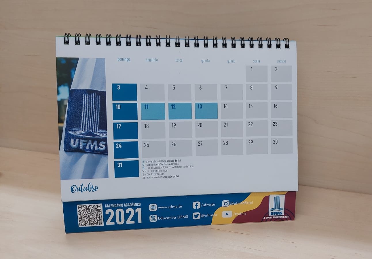 Todos os anos a UFMS confecciona um calendário de mesa, para ser usado pelos professores, técnicos e servidores terceirizados em sua organização no ambiente de trabalho.