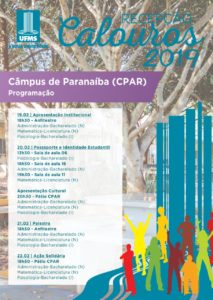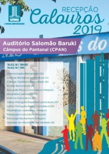 Na próxima segunda-feira, dia 18, aproximadamente cinco mil alunos ingressarão nos dez câmpus da UFMS, distribuídos em 116 cursos oferecidos pela Instituição. Para dar início a esta nova etapa na vida dos alunos, a Pró-Reitoria de Assuntos Estudantis (Proaes) organiza a Recepção aos Calouros.
