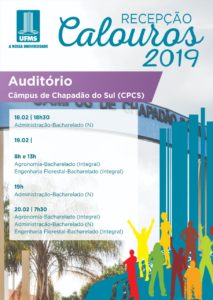No Campus de Ponta Porã, os calouros participarão de atividades culturais e recreativas com a parceria da Atlética e do Diretório Acadêmico Unificado, além de palestra e a apresentação dos projetos existentes. Em Chapadão do Sul, os novos alunos terão um momento de Roda de Conversa com seus veteranos e participarão do trote solidário e plantio de árvores.