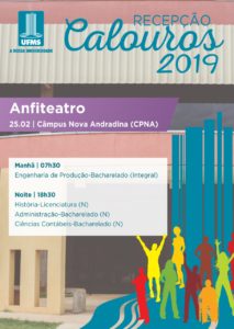 Em Coxim, a recepção contará com a inauguração da geladeira solidária, apresentação da cozinha acadêmica e do “circulendo”. Os calouros poderão participar também de aula de dança, jogos e plantio de mudas de árvores. Já em Naviraí, a semana será agitada com karaokê, show de talentos, zumba, caça ao tesouro, torta na cara, corrida de saco e show de encerramento.