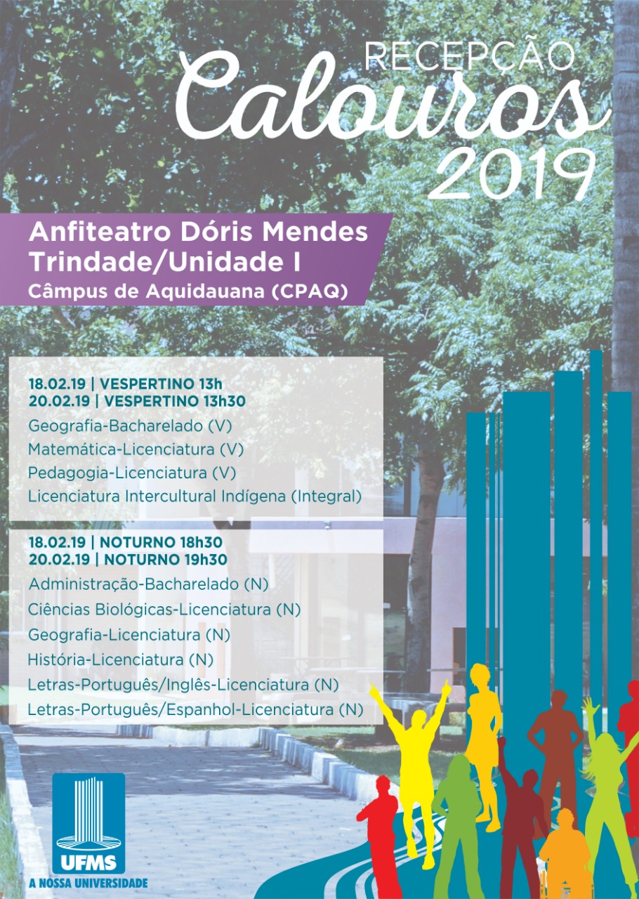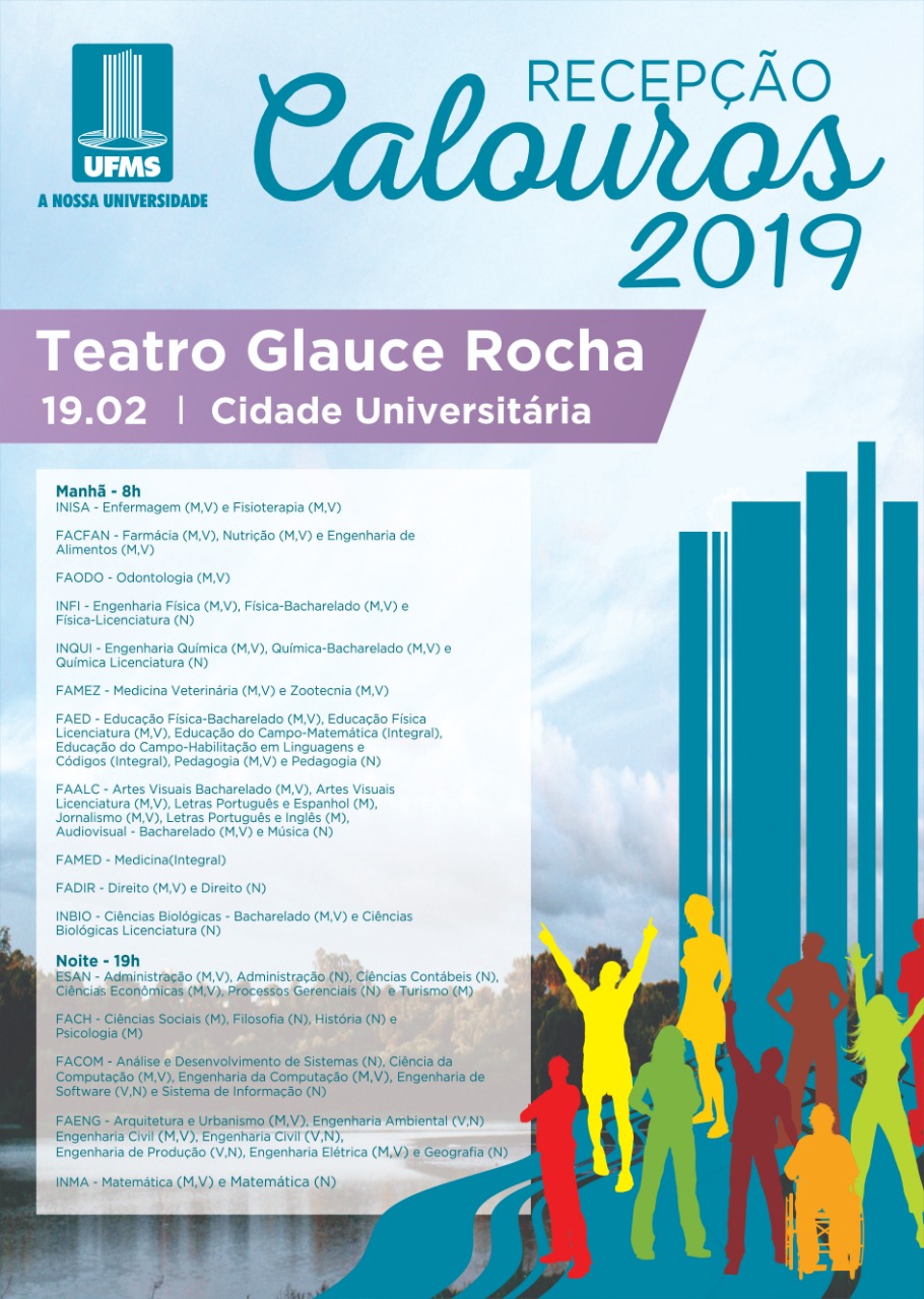 Na próxima segunda-feira, dia 18, aproximadamente cinco mil alunos ingressarão nos dez câmpus da UFMS, distribuídos em 116 cursos oferecidos pela Instituição. Para dar início a esta nova etapa na vida dos alunos, a Pró-Reitoria de Assuntos Estudantis (Proaes) organiza a Recepção aos Calouros.