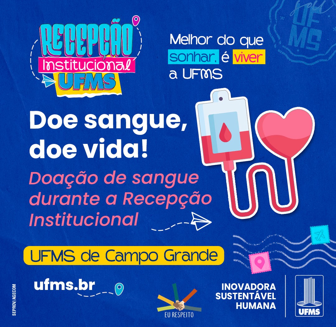 A comunidade universitária poderá participar da campanha de doação de sangue e cadastro para doação de medula óssea nos dias 3 e 4 de março, das 8h às 12h, no Corredor Central da Cidade Universitária, em frente ao Auditório Marçal de Souza. A ação será realizada durante a recepção institucional, por meio de parceria entre a UFMS e o Hemosul, que estará com unidade móvel para coleta no local.