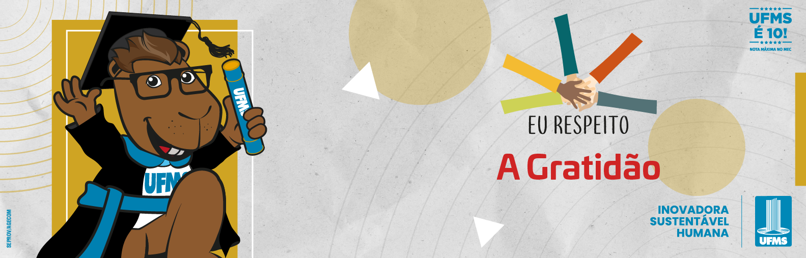 À medida que o ano chega ao fim, a Universidade se enche de alegria por cada conquista, aprendizado e pela colaboração de estudantes, professores, técnicos-administrativos, colaboradores e parceiros que contribuíram para a educação, ciência, tecnologia e inovação em Mato Grosso do Sul ao longo de 2025. Para reconhecer o trabalho e as boas ações desenvolvidas, a UFMS celebra a Gratidão na campanha Eu Respeito de dezembro. O Monumento Símbolo será iluminado na cor vermelha e os totens Sou UFMS receberão decorações natalinas em todos os câmpus.