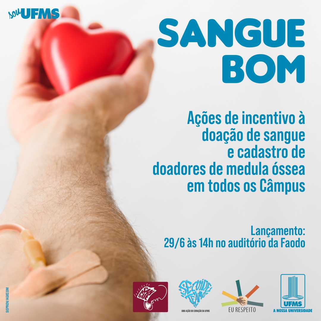 Nesta quarta-feira, 29, a partir das 14h, será realizado o lançamento da ação Sangue Bom, no auditório da Faculdade de Odontologia (Faodo). A realização é em parceria com o Instituto Sangue Bom (ISB) e o intuito é a promoção de ações para a sensibilização da comunidade para a doação de sangue e cadastro como doador de medula óssea.