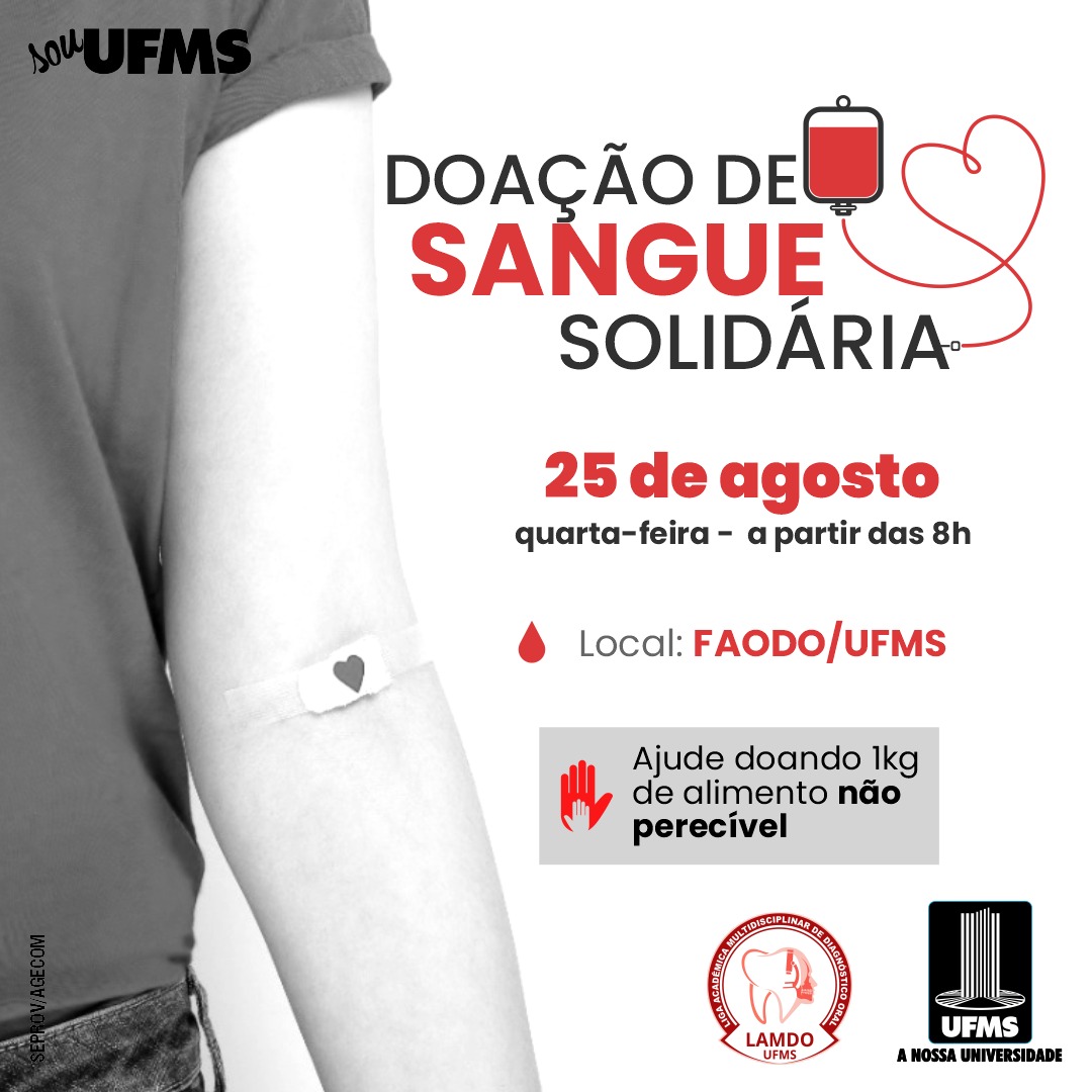 Na próxima quarta-feira, 25, a Faculdade de Odontologia (Faodo) irá sediar uma campanha solidária para a doação de sangue e de alimentos não perecíveis. A ação será das 8h às 11h e a participação será aberta a toda a comunidade.