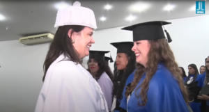 “Como professores, vibramos com cada estudante que chega até aqui, prontos para novos desafios. Por isso, não se esqueçam de celebrar. E, mais do que isso, de reconhecer: agradeçam. Agradeçam aos mestres, aos amigos, aos funcionários que fizeram parte dessa caminhada. Relembrem essa trajetória, as lutas e as vitórias. Honrem suas histórias e levem esse aprendizado adiante. Façam a diferença onde quer que estejam, abram caminhos e sejam sempre a melhor versão de vocês mesmos. A aprendizagem não termina aqui, ela nos acompanha por toda a vida. Sejamos eternos estudantes e que possamos, a cada dia, ser pessoas melhores!”, aconselhou a reitora.
