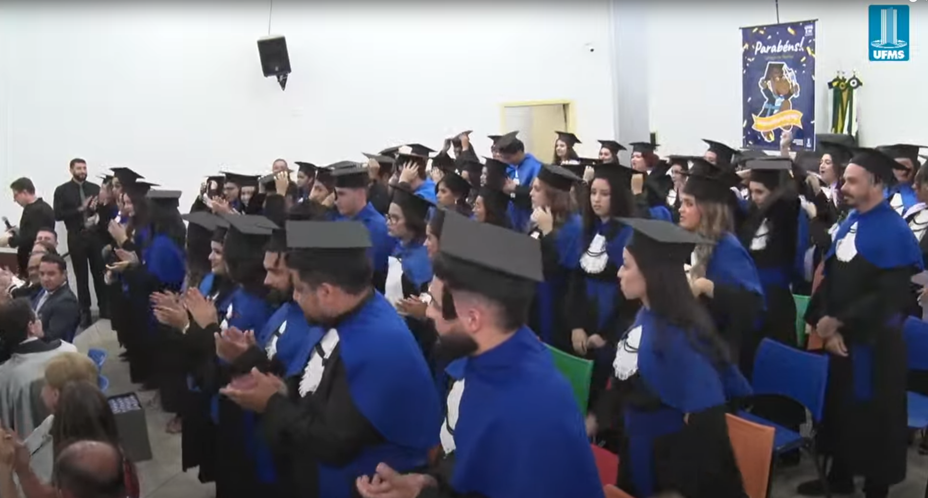 Sessenta e quatro estudantes de Administração, Arquitetura e Urbanismo, Ciências Sociais, Pedagogia e Tecnologia em Gestão de Recursos Humanos participaram da colação de grau do Câmpus de Naviraí (CPNV) ontem, 11. A cerimônia foi transmitida ao vivo pela TV UFMS e teve a presença de familiares, amigos, professores e técnicos-administrativos.