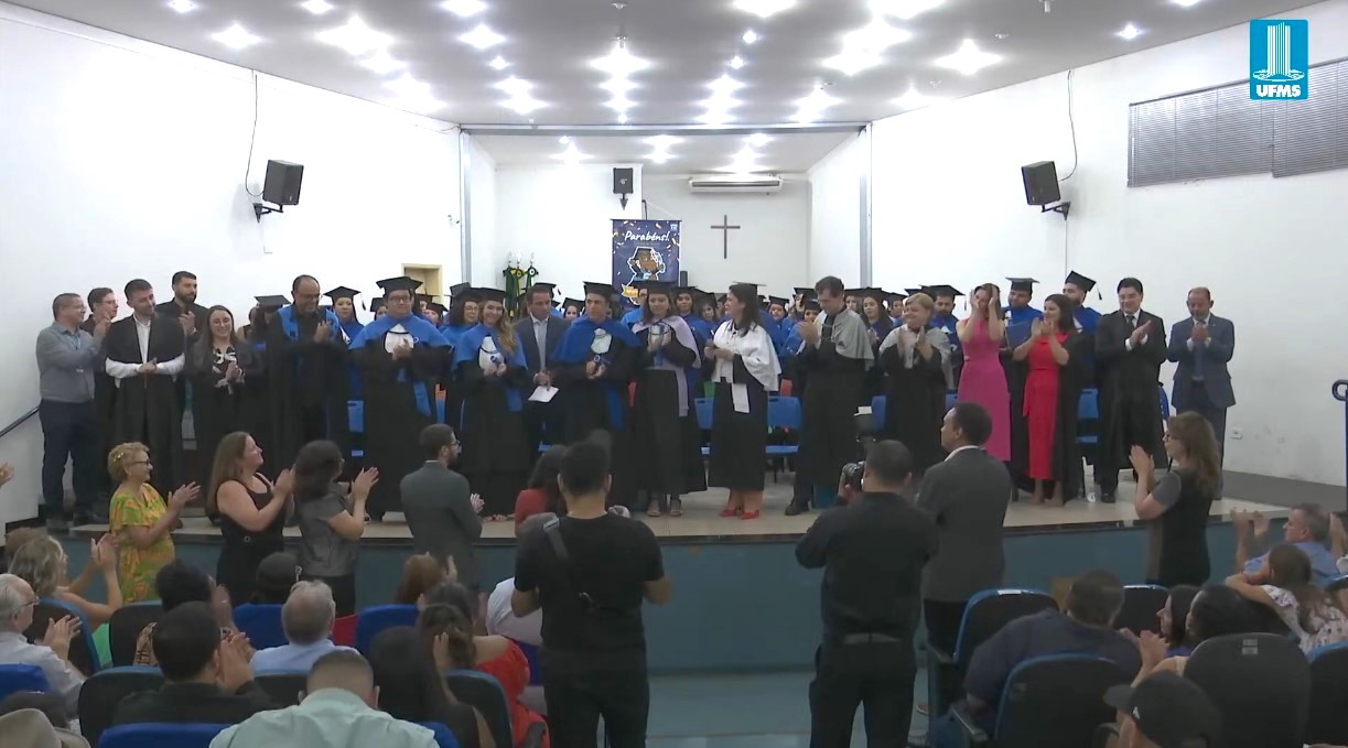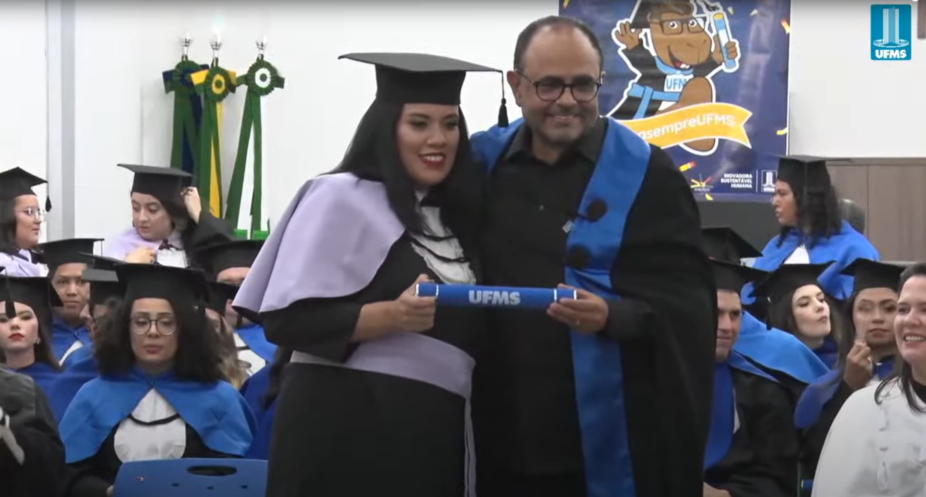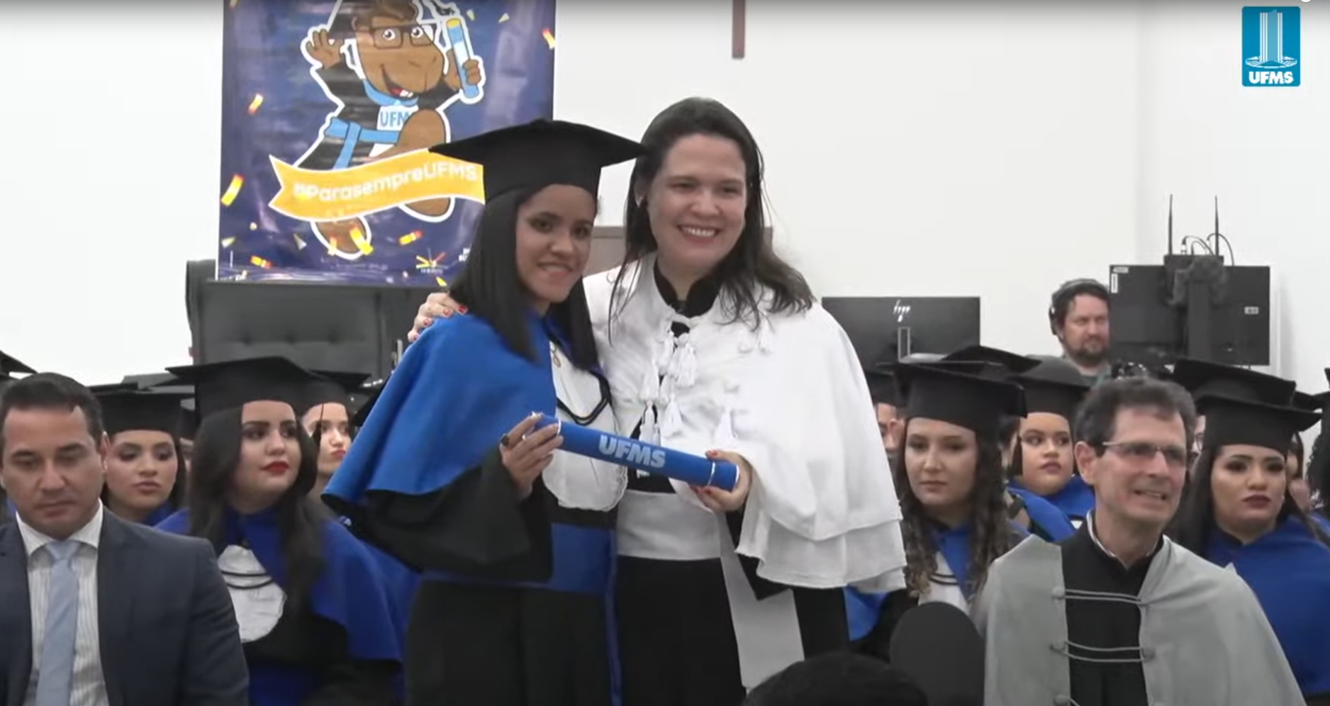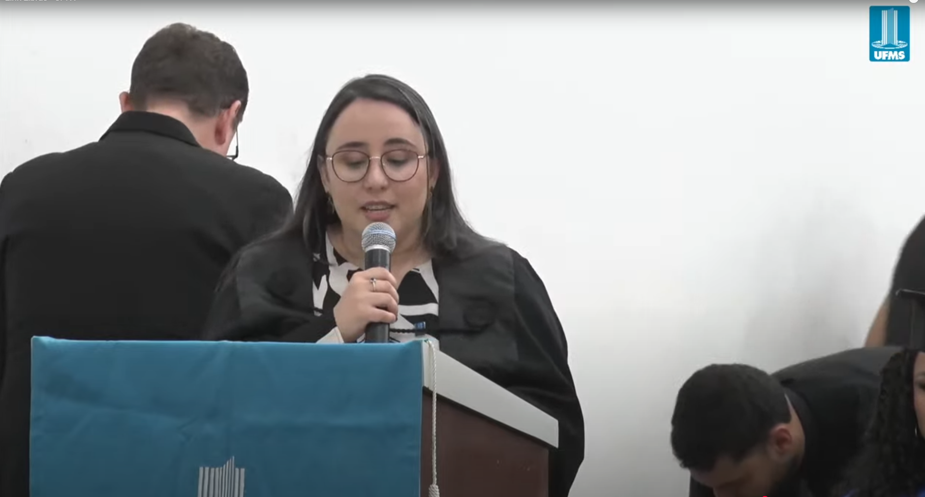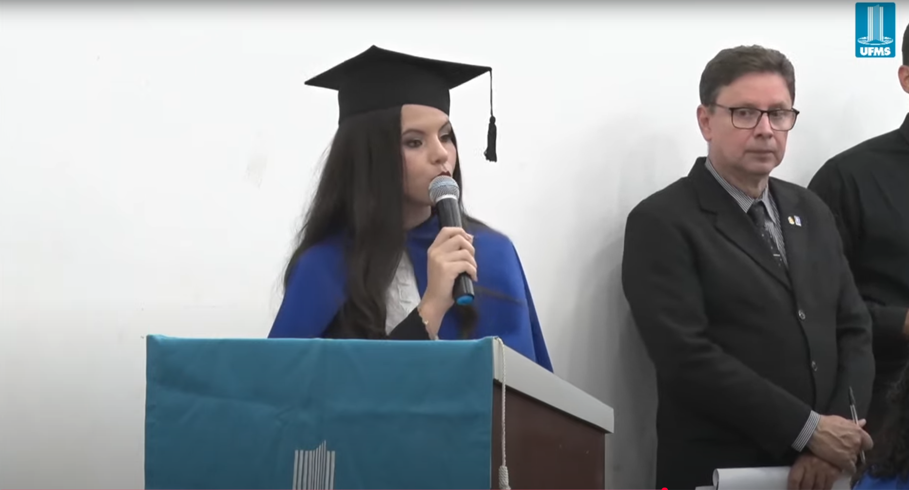 A reitora Camila Ítavo destacou a importância da graduação na vida dos formandos. “Hoje é um dia repleto de simbologia. Vocês, que ingressaram na UFMS cheios de sonhos e expectativas, agora saem daqui graduados. Lembrem-se do momento em que receberam a notícia da aprovação, da emoção e da felicidade que sentiram. Aproveitem e celebrem cada instante desta conquista”, afirmou. “Ao longo dessa trajetória, muitos mestres e funcionários da Universidade estiveram ao lado de vocês, testemunhando cada desafio e cada superação. Valorizar nossa história é reconhecer cada etapa vencida, cada esforço, cada aprendizado. Esta cerimônia foi preparada com muito carinho para vocês e suas famílias, porque sabemos o quanto essa conquista representa. Todos nós somos frutos de sonhos”, acrescentou.