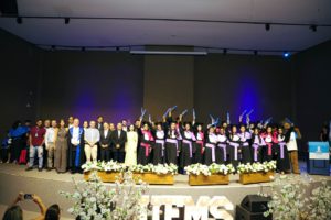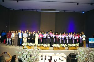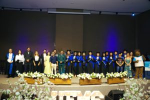 Ao final da cerimônia, os estudantes com os maiores coeficientes de rendimento acadêmico dos cursos foram homenageados com o prêmio de menção honrosa, em reconhecimento pelo seu desempenho.