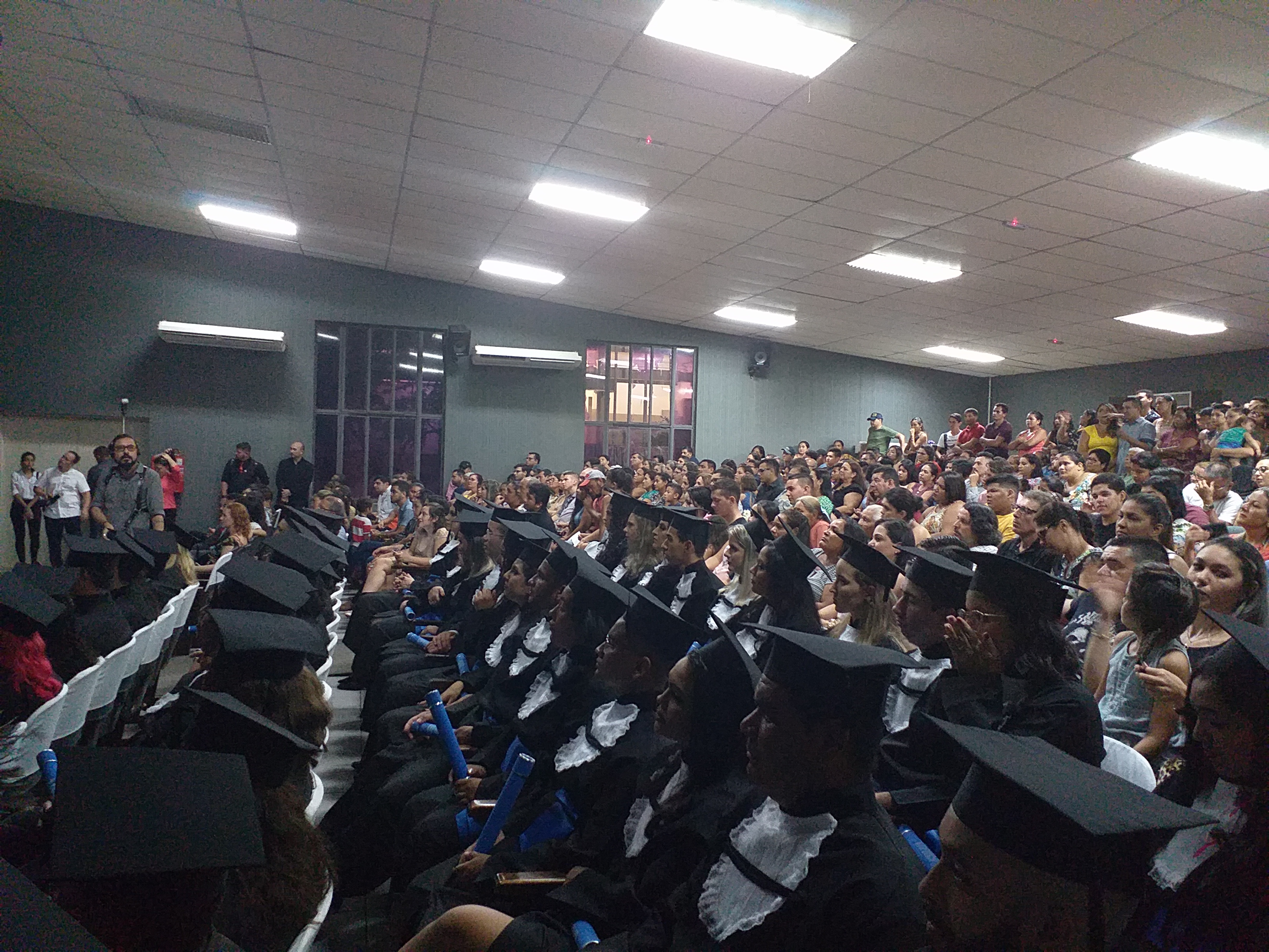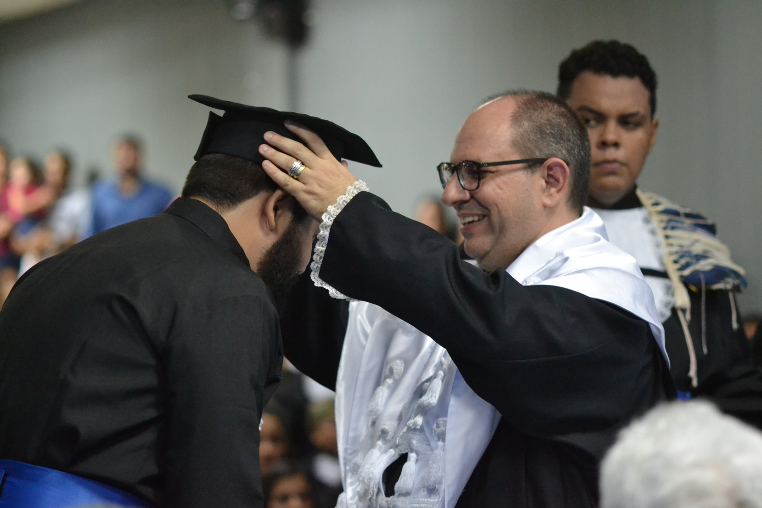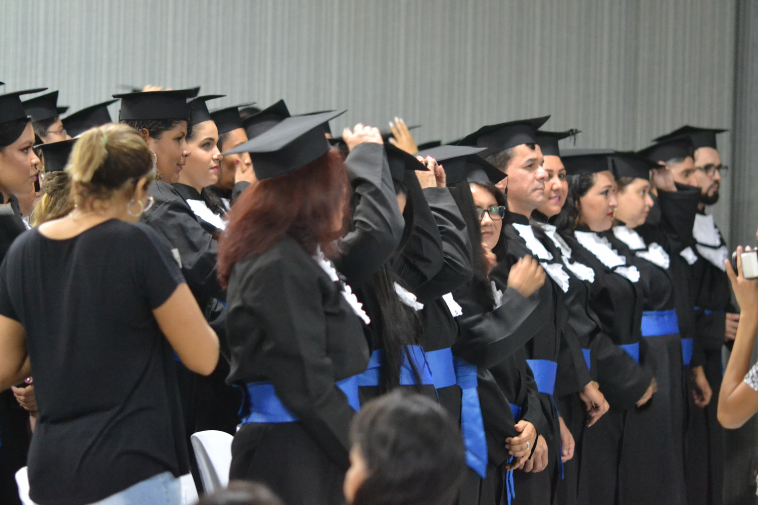 Ao todo, cem formandos dos cursos de Administração, História, Pedagogia, Turismo, Ciências Biológicas, Geografia (bacharelado e licenciatura), Letras (inglês, espanhol e literatura) e Matemática colaram grau em duas noites com as presenças do reitor Marcelo Turine e da vice-reitora Camila Ítavo, familiares, amigos e servidores.